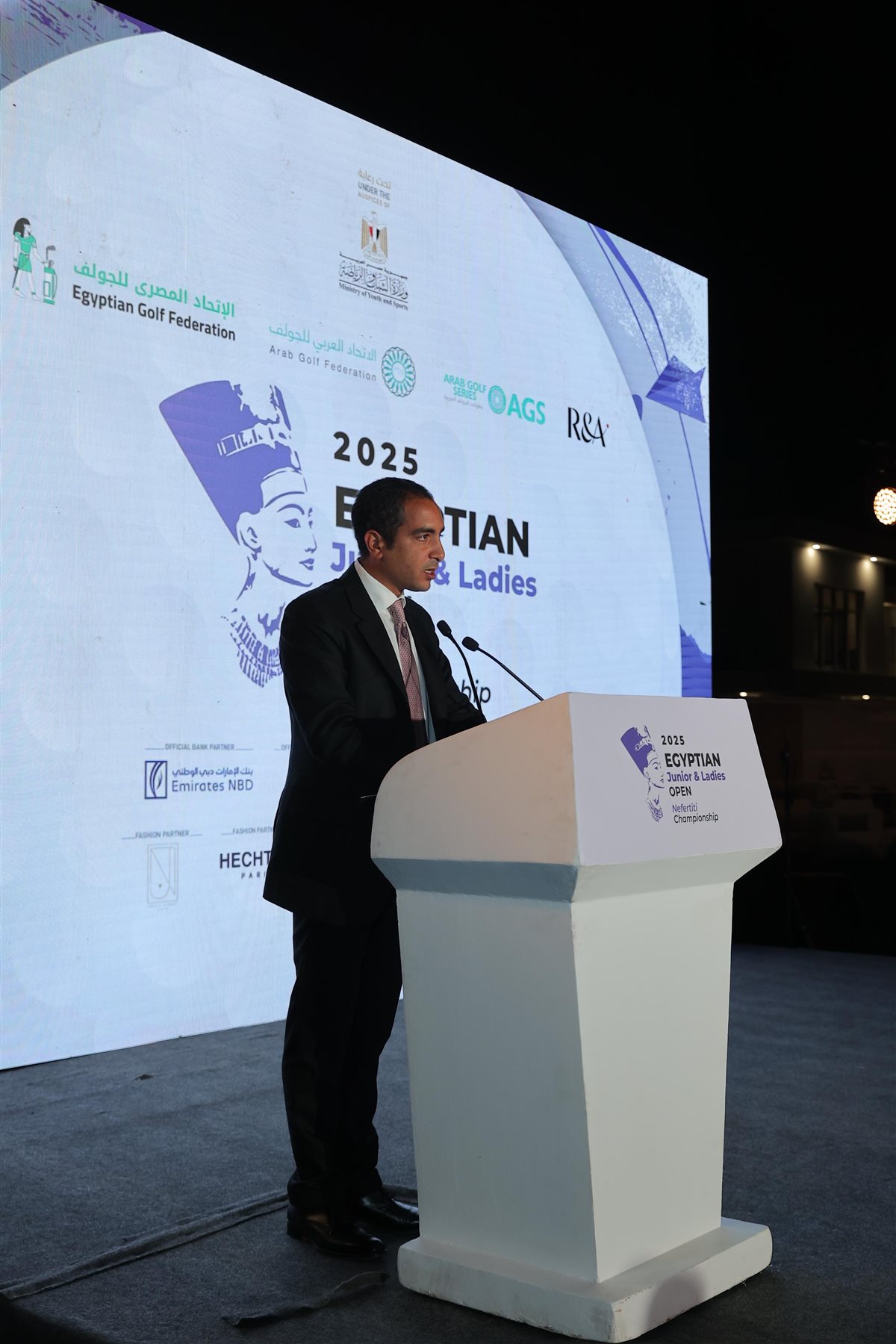 من جهته قال أحمد مختار، رئيس الإدارة المركزية للأداء الرياضي بوزارة الشباب والرياضة، :"يشرفني أن أنقل لحضراتكم تحيات معالي وزير الشباب والرياضة، وتقديره لتشريفكم الكريم، كما نرحب بجميع الحضور والمشاركين في هذه البطولة المتميزة، ونتمنى للاتحاد المصري للجولف دوام النجاح والتوفيق في مسيرته".
