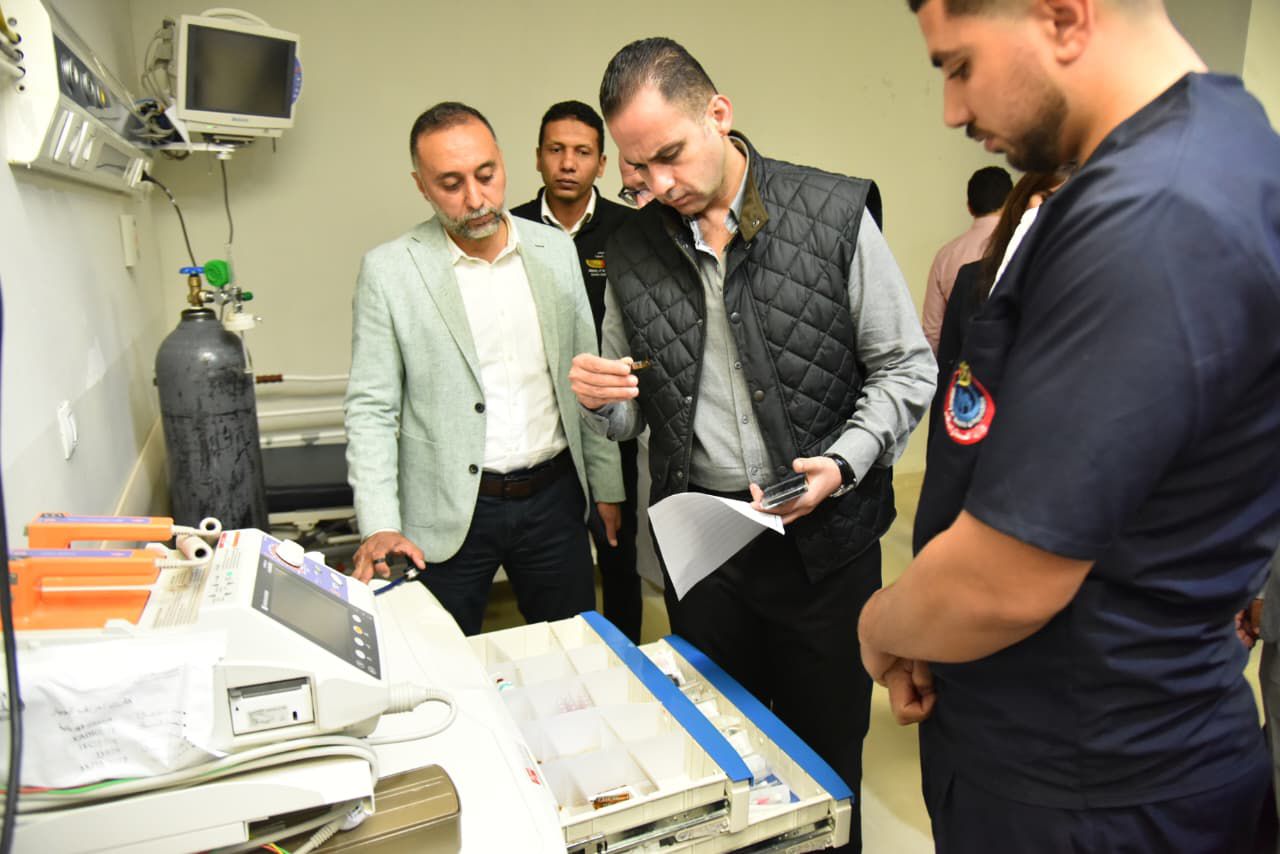تفقد نائب الوزير قسم الطوارئ، الأقسام الداخلية، الرعاية المركزة، الحضانات، وأقسام الأشعة والصيدلية، للتحقق من توافر الأدوية والمستلزمات الطبية، واطلع على معدلات التردد على العيادات الخارجية وبروتوكولات العلاج، موجها بضرورة المتابعة الدقيقة لحالات المرضى لضمان جودة الرعاية.