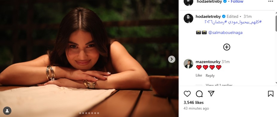 ونشرت هدى الأتربي الصور من خلال حسابها الرسمي عبر موقع تبادل الصور والفيديوهات القصيرة إنستجرام، وعلقت: كلهم بيحبوا مودي.. رمضان 2026.