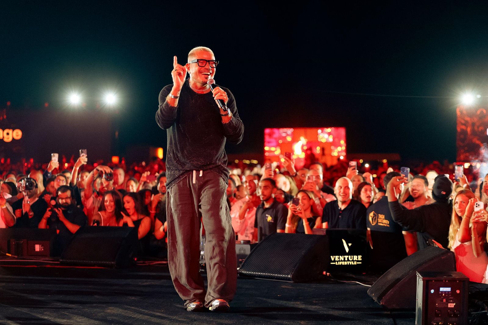 وكعادته صعد الهضبة إلى المسرح على أنغام أغنية "يا أنا يا لأ" وسط تفاعل كبير من الحضور الذين رددوا معه أغانيه على مدار الحفل.
