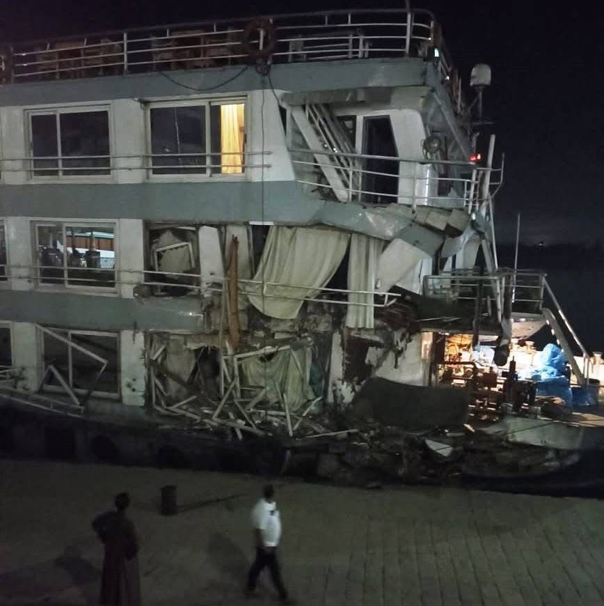 عقب إصطدام الباخرة السياحية " نايل ماركيز " بأحد أعمدة كوبرى كلابشة أثناء توجهها من مدينة أسوان إلى مدينة الأقصر دون وقوع أى إصابات أو خسائر بشرية ، فقد تابع اللواء دكتور إسماعيل كمال محافظ أسوان تداعيات هذا الإصطدام ، والذى أسفر عن تحطم جزئى لمقدمة الباخرة .