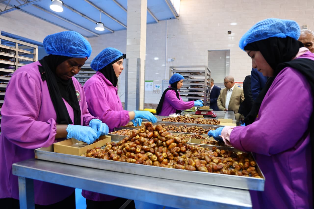 كما تفقد وزيري التنمية المحلية والزراعة ومحافظ الوادي الجديد والسادة المحافظين والسفراء والضيوف مجمع تمور الوادي الجديد وخلال الجولة، اطلع الوفد الوزاري على مراحل التصنيع والإنتاج والتعبئة والتغليف بالمجمع، وما شهده من أعمال تطوير وتحديث لرفع كفاءة خطوط الإنتاج وجودة المنتجات النهائية، بما يلائم متطلبات السوق المحلية والتصديرية. كما شملت الجولة تفقد ثلاجات حفظ التمور وعددها 40 ثلاجة بطاقة استيعابية 1600 طن، إلى جانب خطوط إنتاج جديدة مخصصة لتصنيع الوجبة المدرسية ومنتجات البلح المبتكرة.