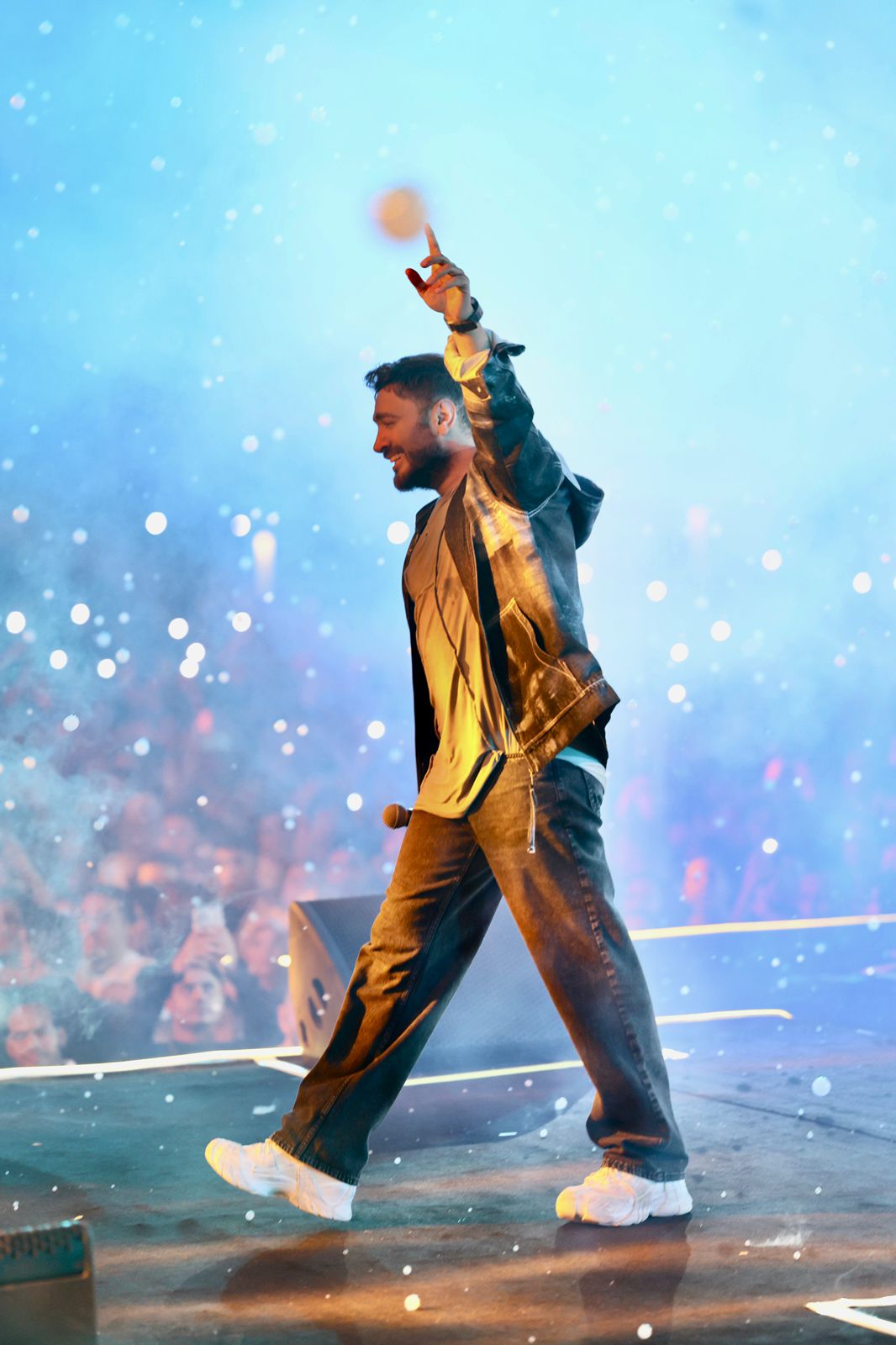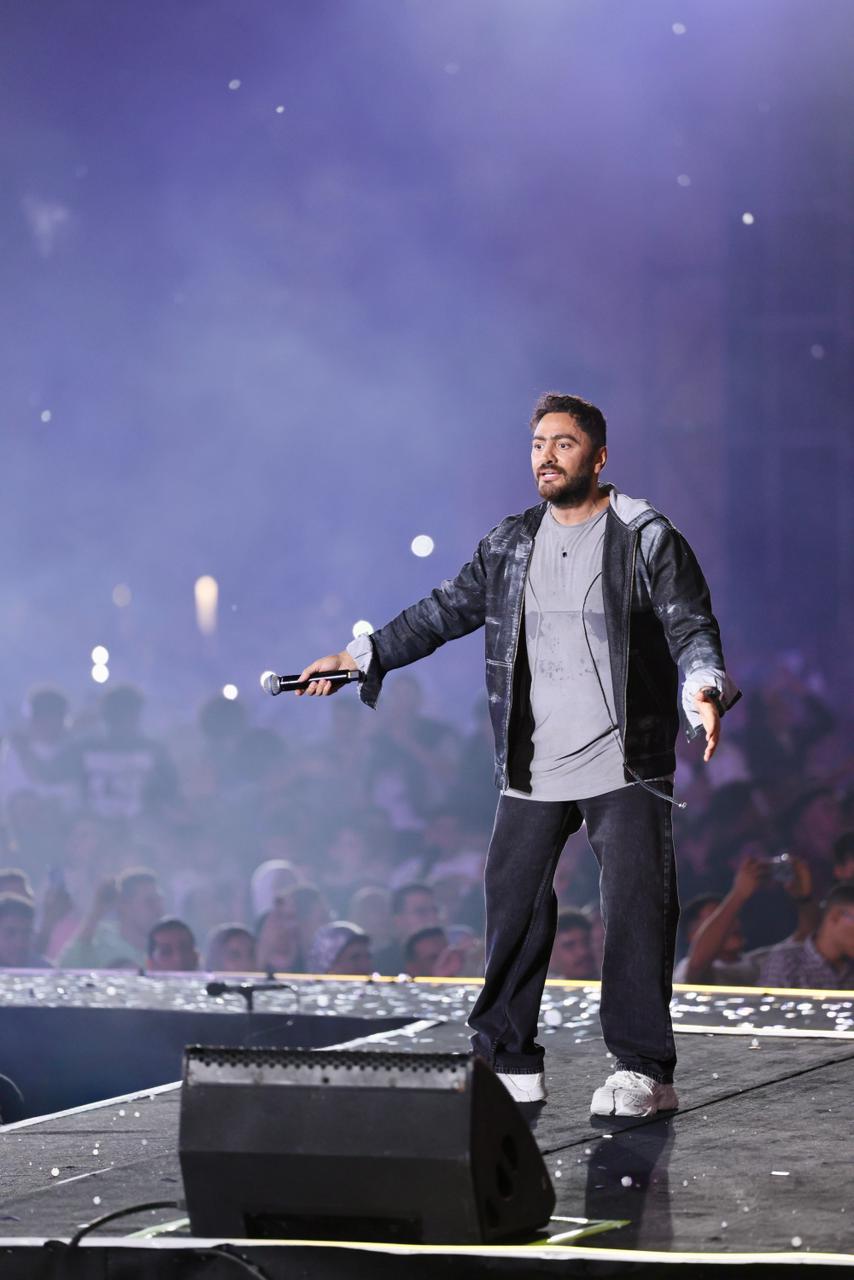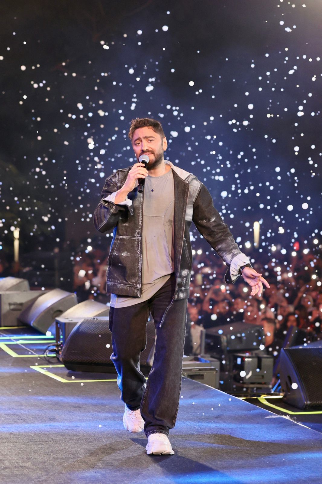 وصعد على خشبة المسرح وسط استقبال جماهيري حافل مرردا "ميدلي" استعراضي مبهر يضم عدد من أغانيه التي تألق بها طوال مشواره الفني ثم أنطلق ليشعل الحفل بالمزيد من اغانيه الجديدة بالإضافة الي أغنية "ذوقك العالي" التي سبق وقدمها كدويتو مع الكينج محمد منير وأغنيتي" ملكة جمال الكون" و"المقص".