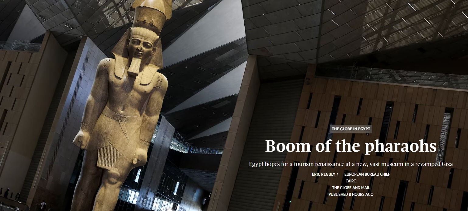 وقالت الصحيفة "لقد أحدثت الهضبة الجديدة والممشى والمتحف المصري الكبير نفسه - وخاصة المتحف المصري الكبير، مع تحفة فنية متمثلة فى مجموعة توت عنخ آمون - نقلة نوعية في السياحة في البلاد. فقد تحولت رؤية مصر القديمة في أبهى صورها من عناء إلى متعة في مكان واحد مريح."