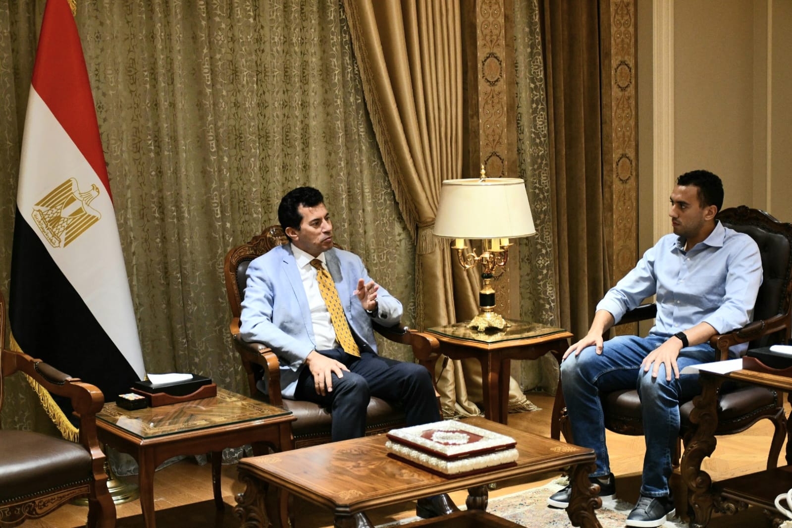 وزير الرياضة يلتقي البطل الأولمبي أحمد الجندي