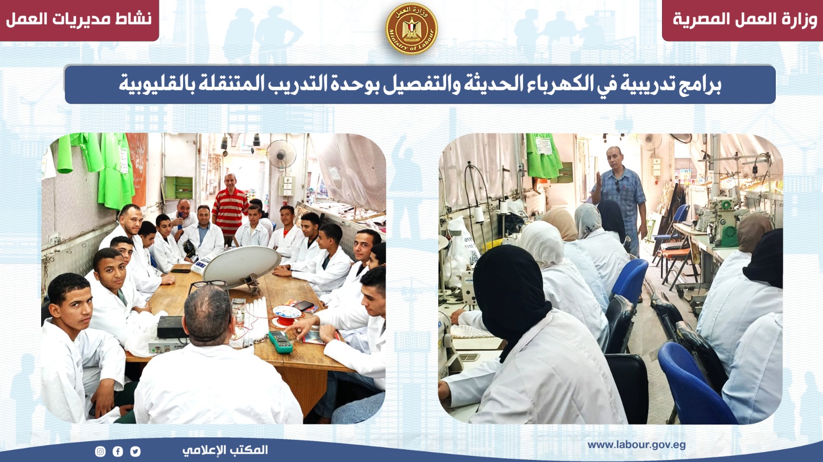 برامج تدريبية بمجالي الكهرباء الحديثة والتفصيل بوحدة التدريب المتنقلة بالقليوبية