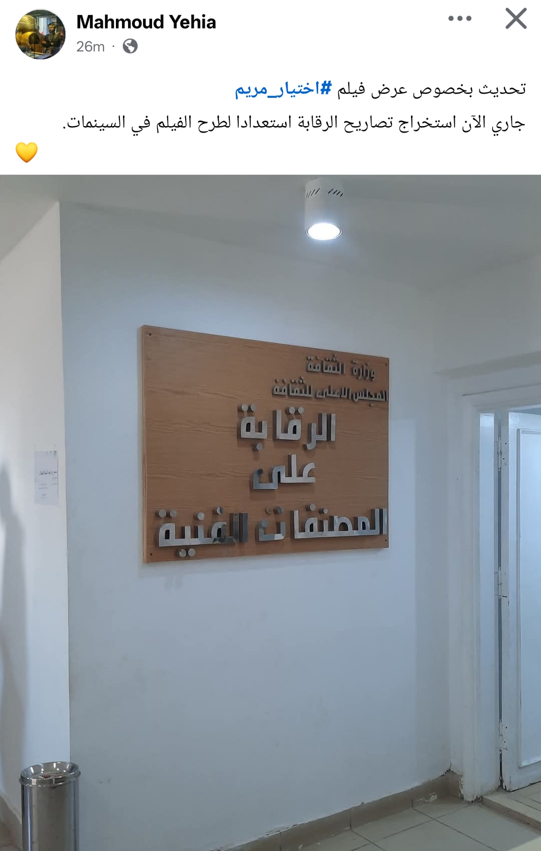 وكتب محمود يحيى من خلال حسابه الرسمي عبر موقع التواصل الاجتماعي فيسبوك: تحديث بخصوص عرض فيلم اختيار مريم.. جاري الآن استخراج تصاريح الرقابة استعدادًا لطرح الفيلم في السينمات.