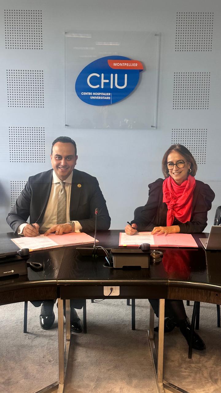 وقّع الدكتور أحمد السبكي، رئيس مجلس إدارة الهيئة العامة للرعاية الصحية والمشرف العام على مشروع التأمين الصحي الشامل، مذكرة تفاهم مع الدكتورة آن فيرير، رئيس مستشفيات جامعة مونبلييه الفرنسية العريقة (CHU Montpellier)، وذلك خلال زيارته إلى دولة فرنسا، وفي إطار برنامج (HUB) لتعزيز برامج البعثات والتوأمة الدولية والتدريب العملي بالخارج الذي أطلقته الهيئة العامة للرعاية الصحية.