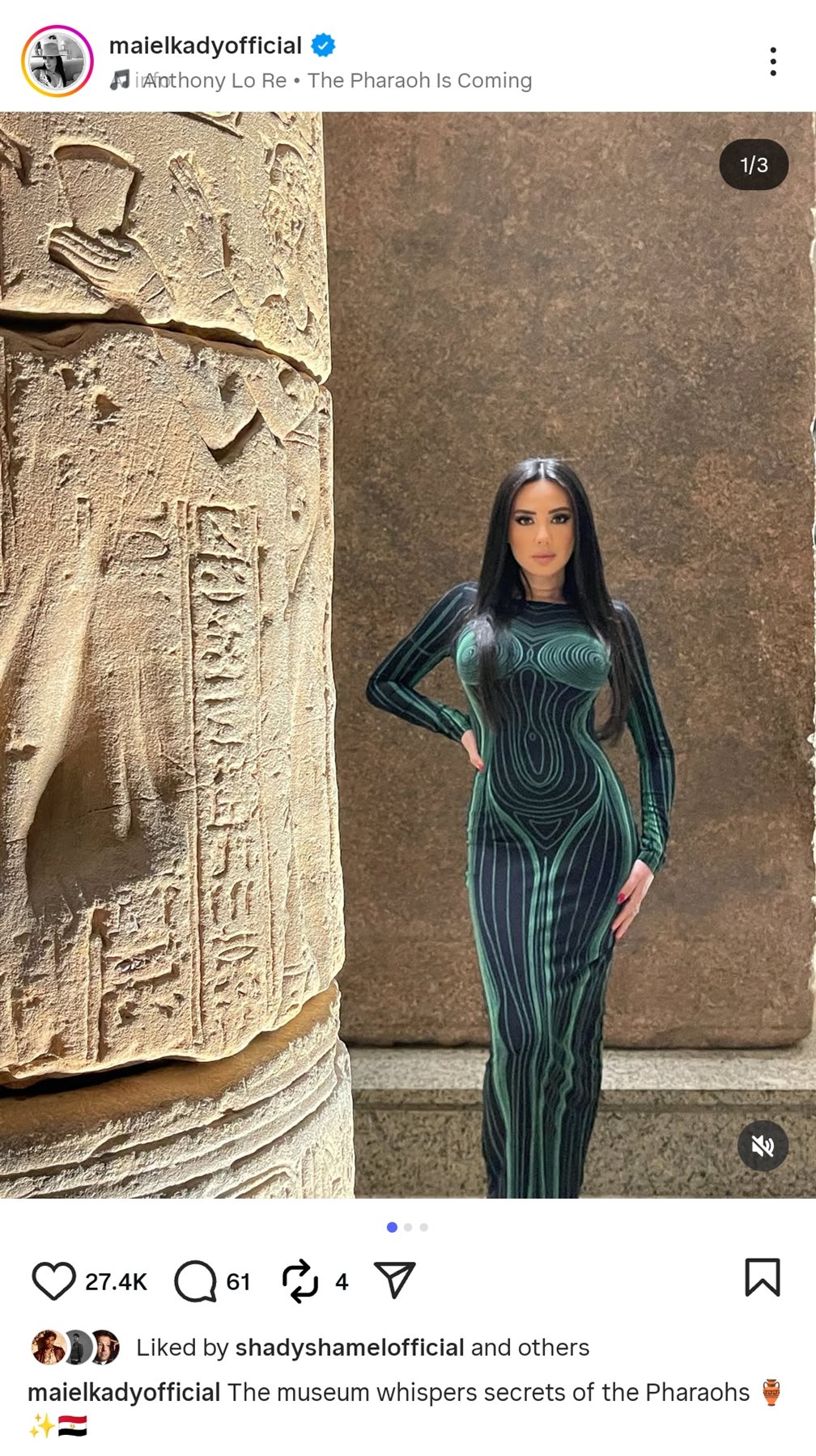 وشاركت مي القاضي جمهورها صورًا من المتحف المصري الكبير، من خلال حسابها الرسمي عبر موقع تبادل الصور والفيديوهات القصيرة إنستجرام، وكتبت: المتحف يهمس بأسرار الفراعنة.