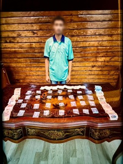وبالفحص أمكن تحديد وضبط الشخص الظاهر بمقطع الفيديو (عاطل - مقيم بدائرة قسم شرطة ثان شبرا الخيمة) وبحوزته (كمية لمخدر البودر) وبمواجهته أقر بحيازته للمواد المخدرة بقصد الإتجار.