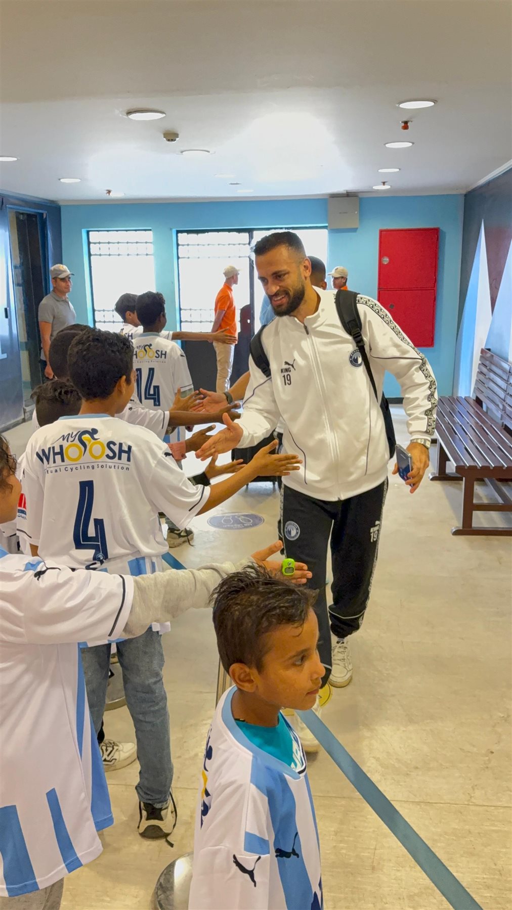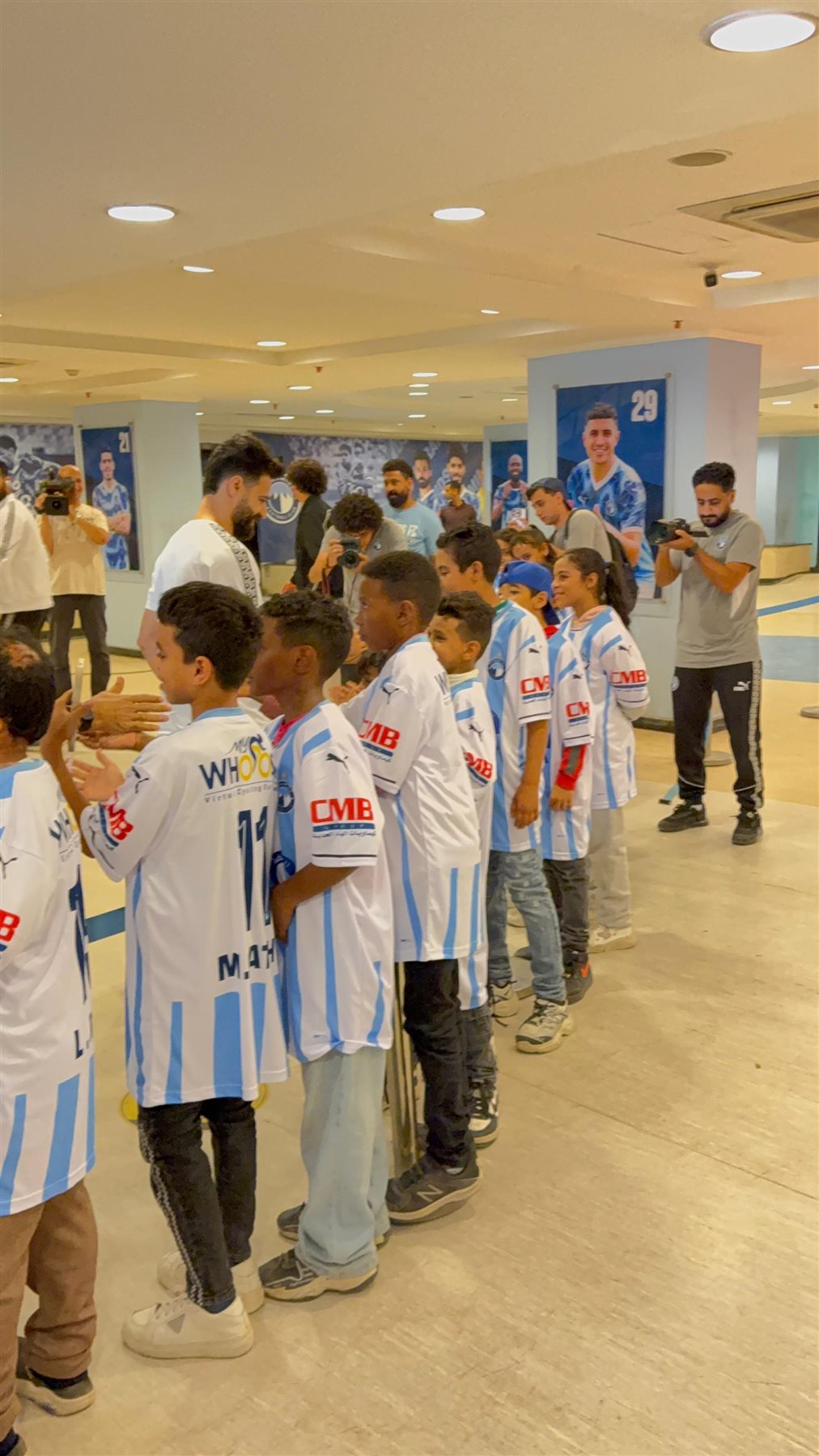وكان أطفال مستشفى أهل مصر للجروق في استقبال اللاعبين لدى وصولهم الاستاد في إطار الدور المجتمعي بدعوة الأطفال لحضور اللقاء والنزول مع اللاعبين.