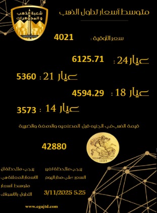 سعر الذهب اليوم الإثنين 3-11-2025 في مصر.. تحديث لحظي في التعاملات المسائية