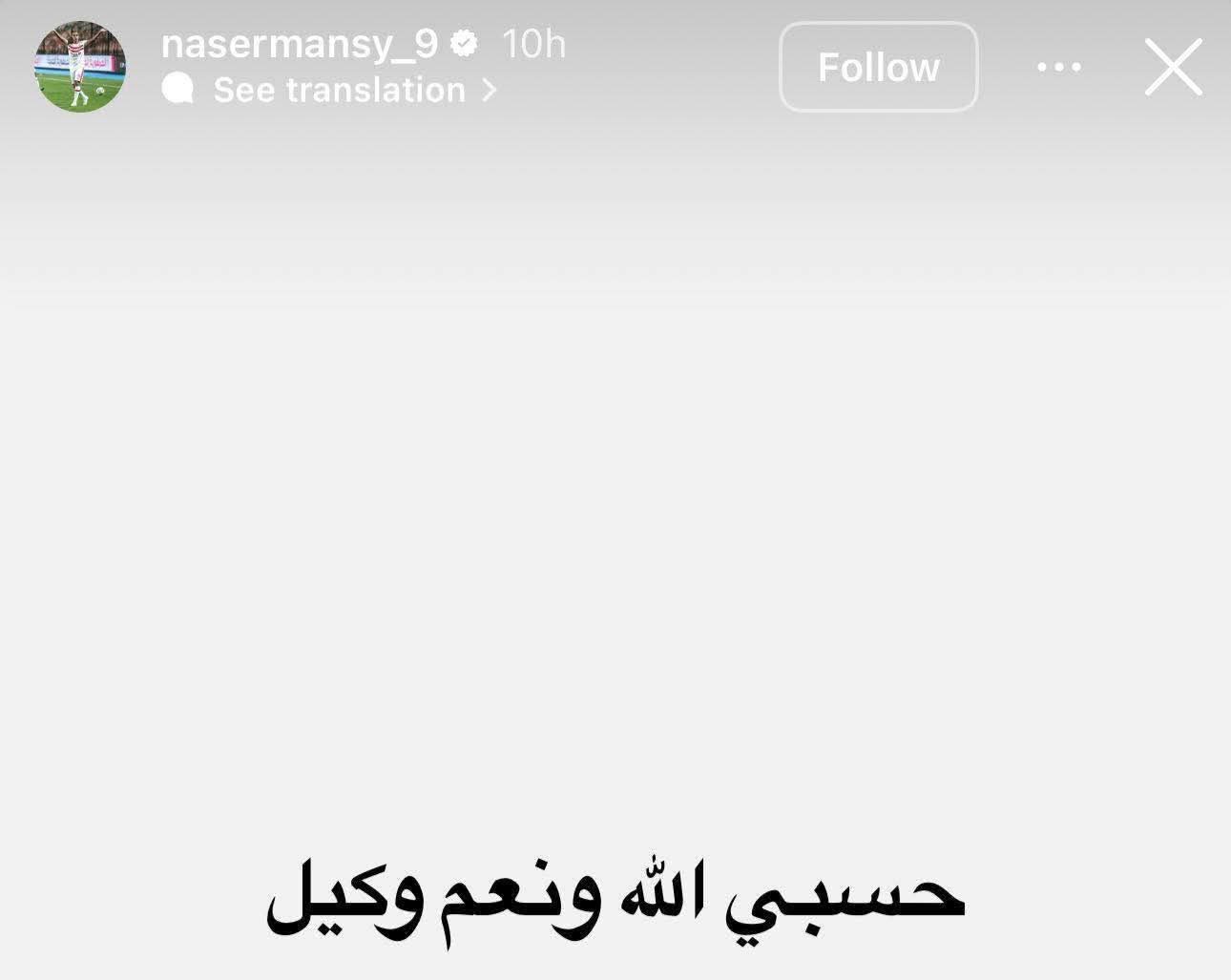 ونشر ناصر منسي تعليق عبر خاصة الاستوري وكتب: حسبي الله ونعم الوكيل.