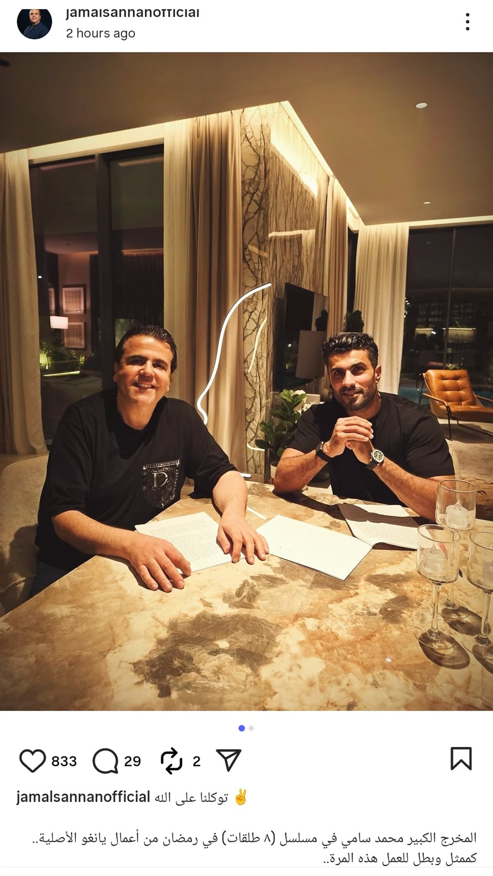 ونشر جمال سنان صور تجمعه بـ محمد سامي، من خلال حسابه الرسمي عبر موقع تبادل الصور والفيديوهات القصيرة إنستجرام، وكتب: توكلنا على الله.. المخرج الكبير محمد سامي في مسلسل (۸) طلقات) في رمضان من أعمال يانغو الأصلية... كممثل وبطل للعمل هذه المرة.