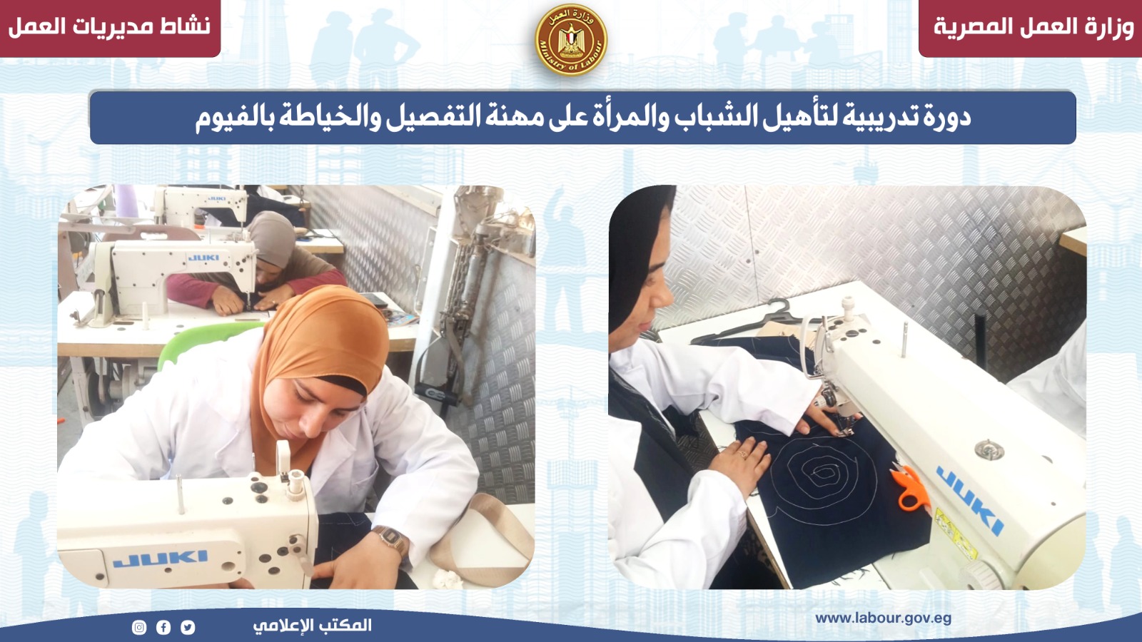 نظمت مديرية العمل بالفيوم دورة تدريبية بوحدة التدريب المتنقلة على مهنة التفصيل وخياطة الملابس الجاهزة بقرية قصر الجبالي بمركز يوسف الصديق، ضمن خطة التدريب المهني للعام 2025 / 2026، والتي تهدف إلى تمكين الشباب والمرأة وتوفير فرص عمل لائقة من خلال التدريب المهني. وتستمر الدورة لمدة 150 ساعة تدريبية بمشاركة 10 متدربات، تحت إشراف مديرية العمل بالفيوم وبمتابعة من إدارة التدريب بالمديرية.