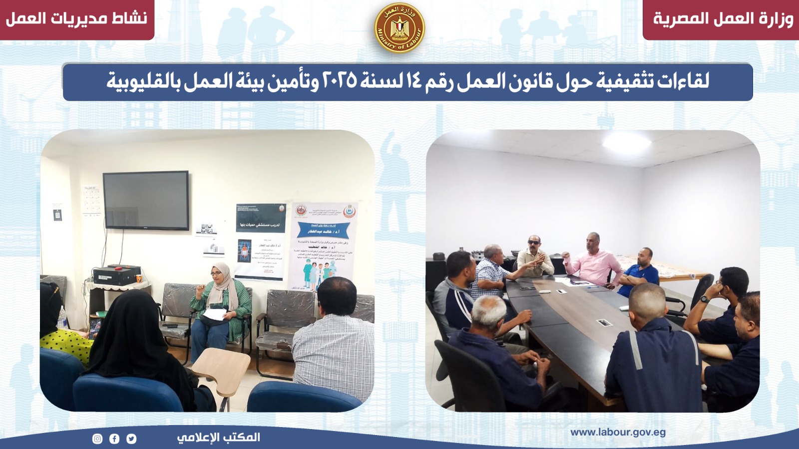 8-لقاءات تثقيفية حول قانون العمل رقم 14 لسنة 2025 وتأمين بيئة العمل بالقليوبية