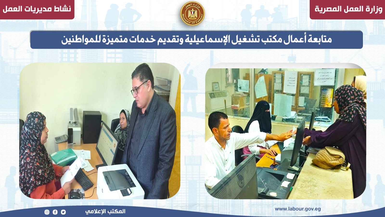 10- متابعة أعمال مكتب تشغيل الإسماعيلية وتقديم خدمات متميزة للمواطنين