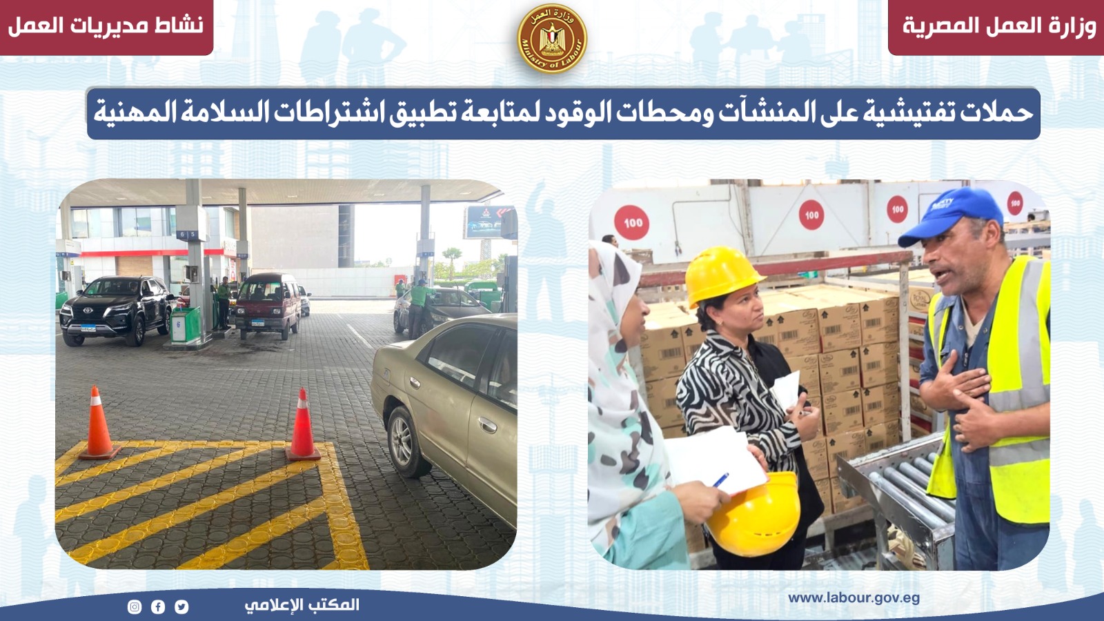 1-حملات تفتيشية على المنشآت ومحطات الوقود لمتابعة تطبيق اشتراطات السلامة المهنية في 4 محافظات ..