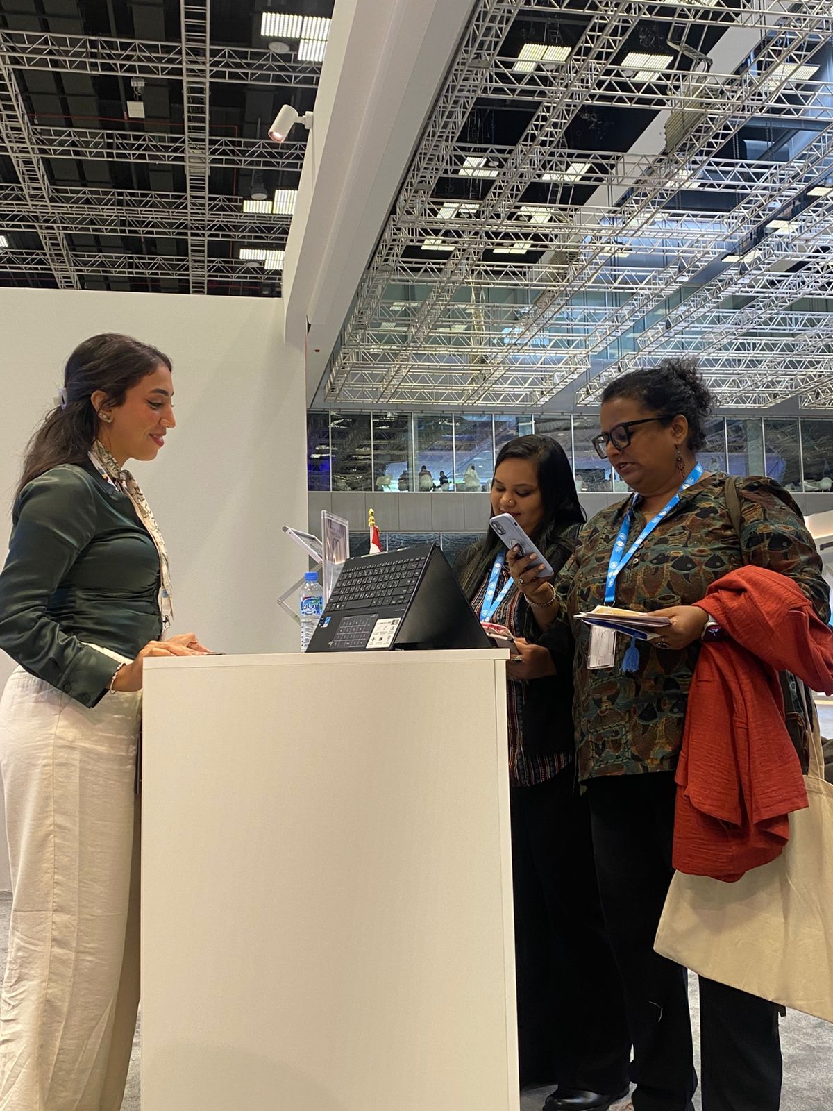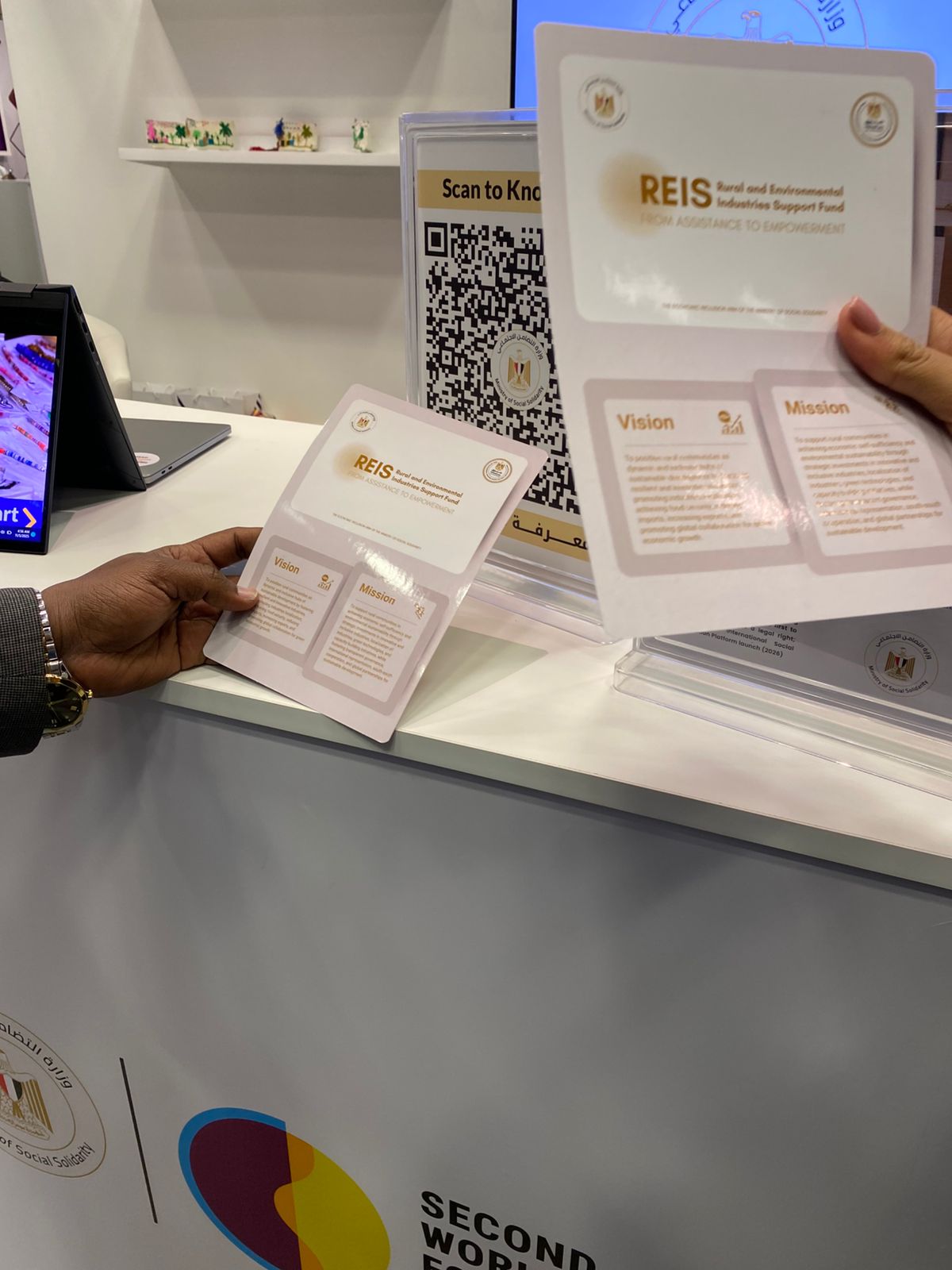 واستعرضت وزارة التضامن الاجتماعي كذلك تجربتها باستخدام الذكاء الاصطناعي داخل الجناح.
