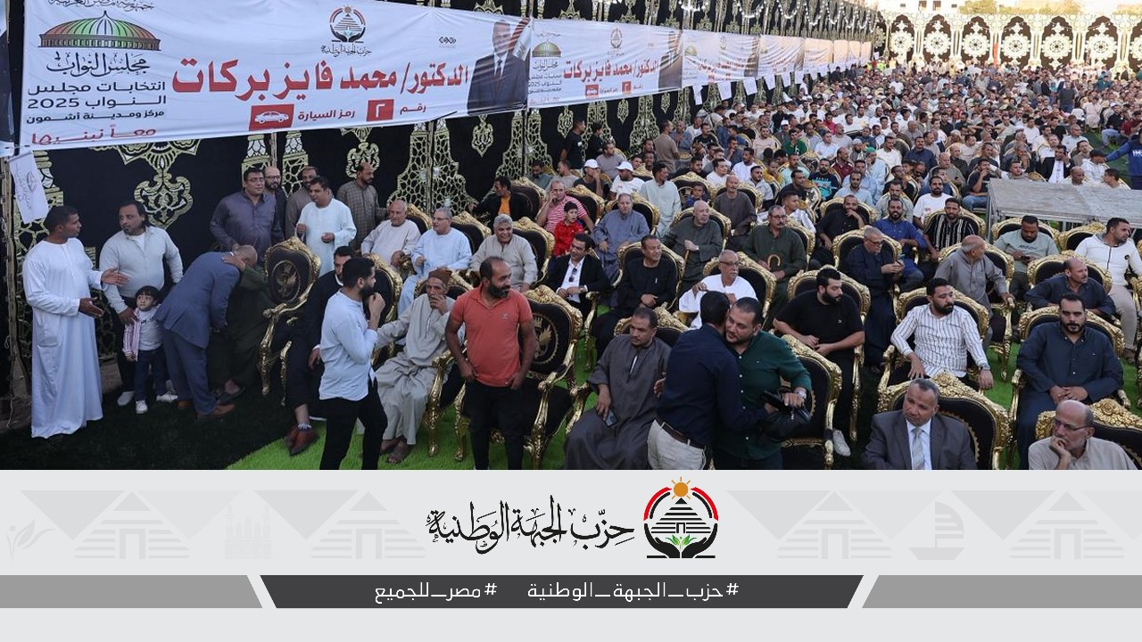 نظم حزب الجبهة الوطنية مؤتمرًا جماهيريًا حاشدًا بمحافظة المنوفية، لدعم مرشحي الحزب في انتخابات مجلس النواب 2025، وسط حضور جماهيري كبير من أبناء المحافظة الذين أعلنوا تأييدهم الكامل للنائب محمد فايز بركات، مرشح الحزب عن دائرة أشمون، في مشهد يعكس ثقة المواطنين في الحزب ومرشحيه، ودوره في تمثيل طموحات الشعب داخل البرلمان.
