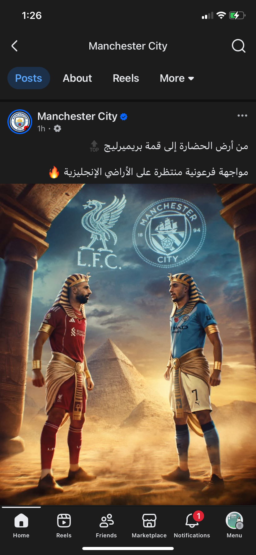 قبل انطلاق القمة المرتقبة في الدوري الإنجليزي الممتاز بين مانشستر سيتي وليفربول، نشر الحساب الرسمي لنادي مانشستر سيتي على موقع فيس بوك منشورًا أثار تفاعلًا واسعًا بين الجماهير العربية والمصرية.