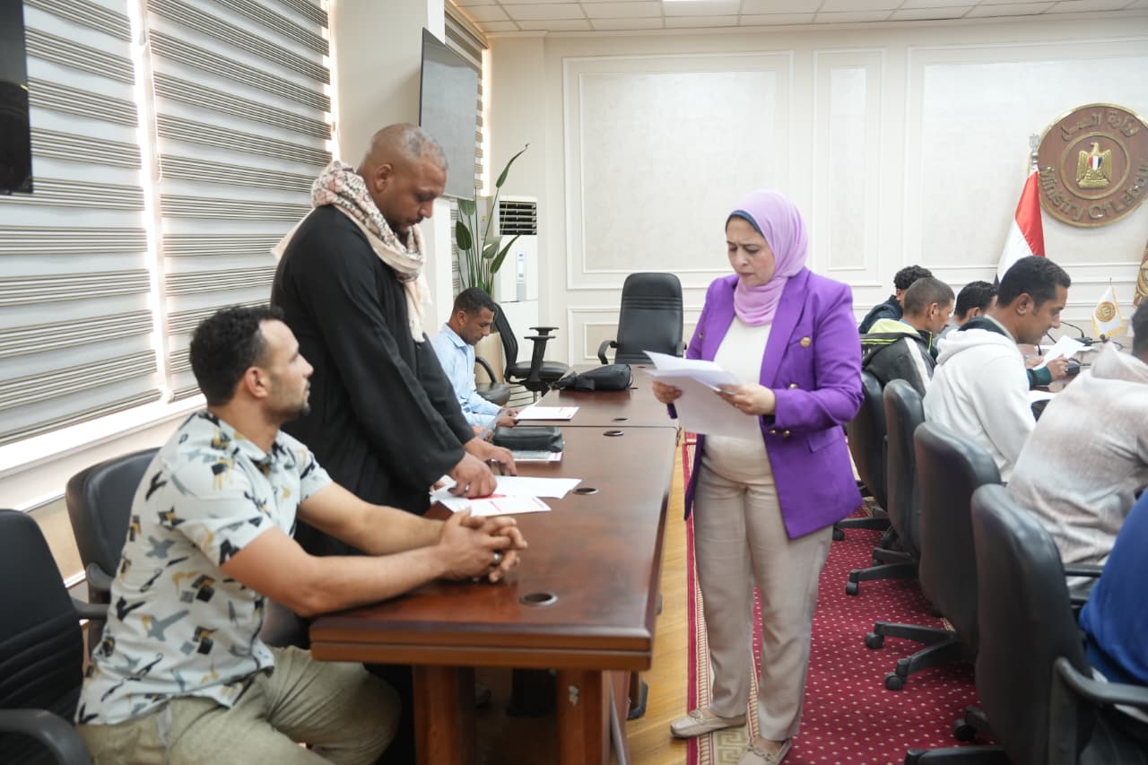 نيابةً عن محمد جبران وزير العمل، قامت هبة أحمد مدير عام الإدارة العامة للتشغيل، بتسليم 36 عقد عمل لشباب مصريين اجتازوا الاختبارات، للعمل في مجال الزراعة بالمملكة الأردنية الهاشمية، ضمن الفرص التي سبق أن أعلنت عنها الوزارة بالتعاون مع الجانب الأردني.
