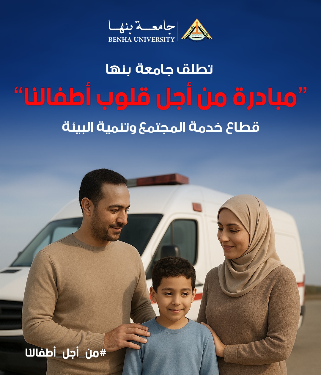 أطلق قطاع خدمة المجتمع وتنمية البيئة بجامعة بنها مبادرة " من أجل قلوب أطفالنا" وذلك في إطار حرص الجامعة على دعم صحة طلاب المدارس والاكتشاف المبكر للأمراض التي قد تؤثر على القلب نتيجة التهابات اللوزتين أو الحمى الروماتيزمية، حفاظًا على صحة وسلامة الجيل الصغير.