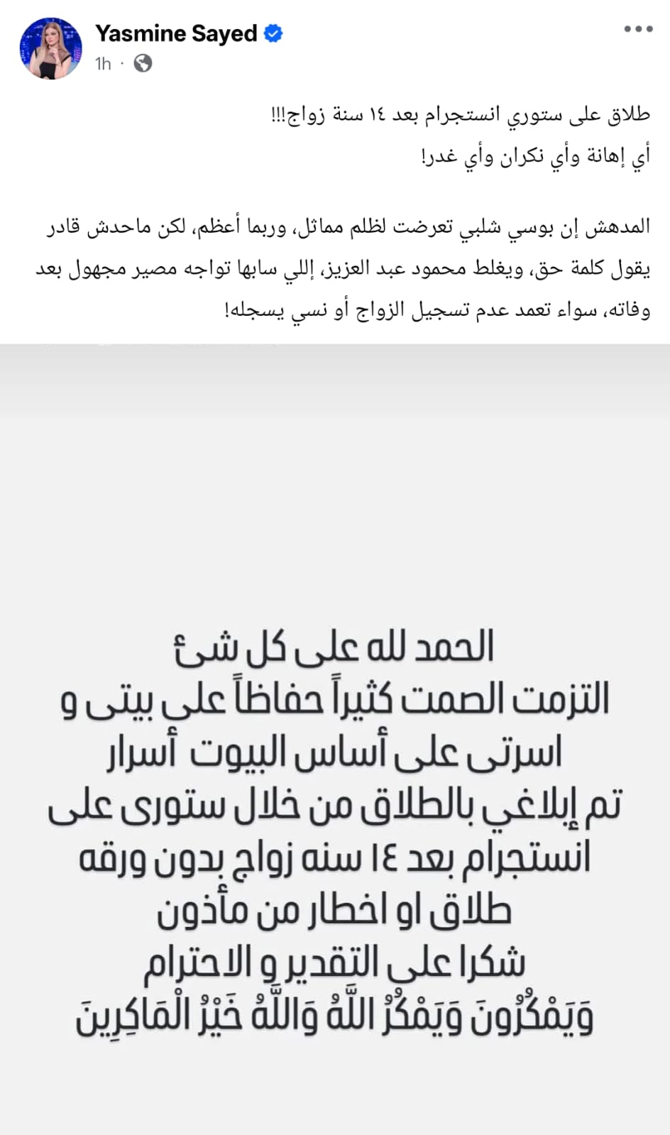 وأختتم: ومكنتش أفضل تماما اتكلم عن حياتي الشخصية احتراما لكل الأطراف ولكن تقديرًا للجمهور اللي يهمه امري وجب التوضيح.