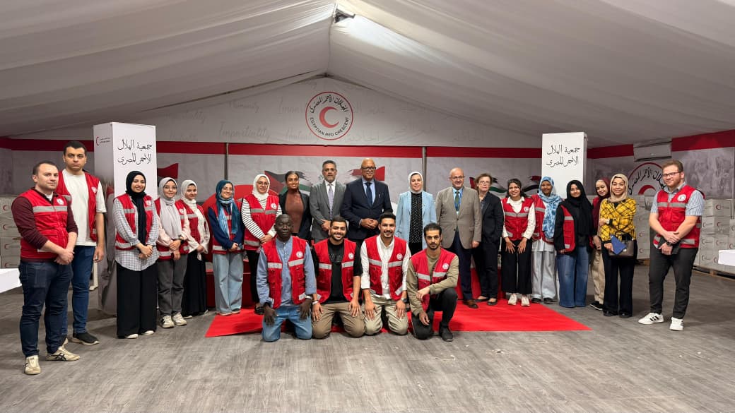 كما زار الوفد مركز تعبئة وتجهيز المساعدات الإنسانية، حيث تعرف على مراحل تجهيز السلال الغذائية، وشارك في تعبئة المساعدات الموجهة إلى غزة، في بادرة رمزية عبّروا من خلالها عن تضامنهم مع الشعب الفلسطيني، وتركوا رسائل دعم موقّعة بأسمائهم داخل صناديق الهلال الأحمر المصري المتجهة إلى أهالي القطاع.