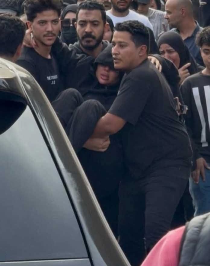 انهيار زوجة إسماعيل الليثي أثناء تشييع الجنازة