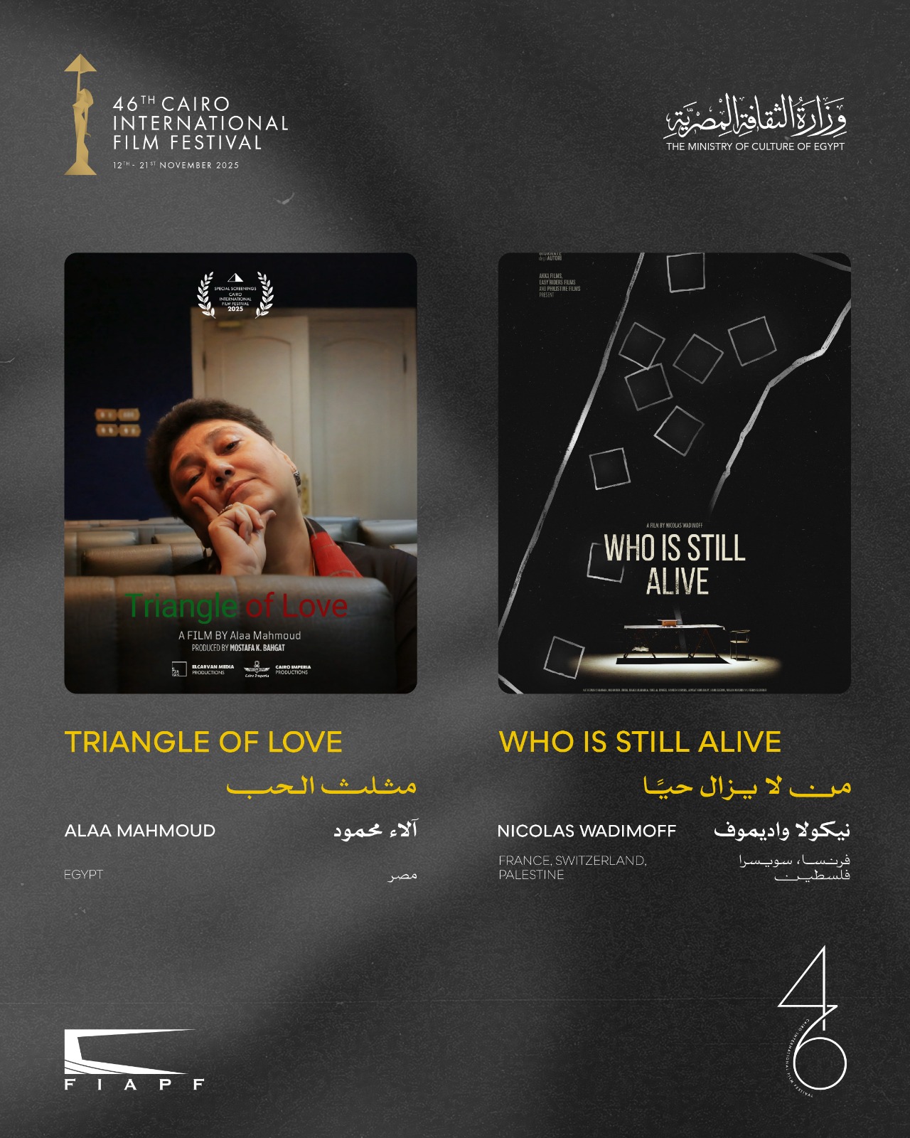 مهرجان القاهرة يعلن القائمة النهائية لبرنامج أفلام العروض الخاصة في دورته الـ46