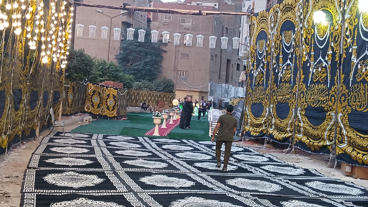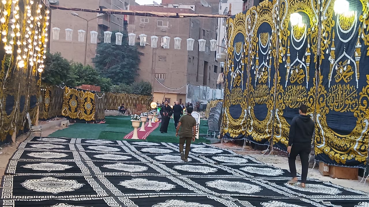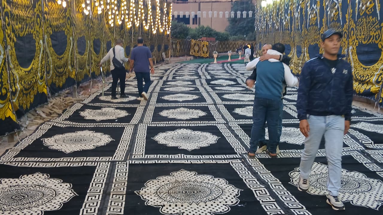 الانتهاء من فرش سرادق عـزاء إسماعيل الليثي في إمبابة| صور