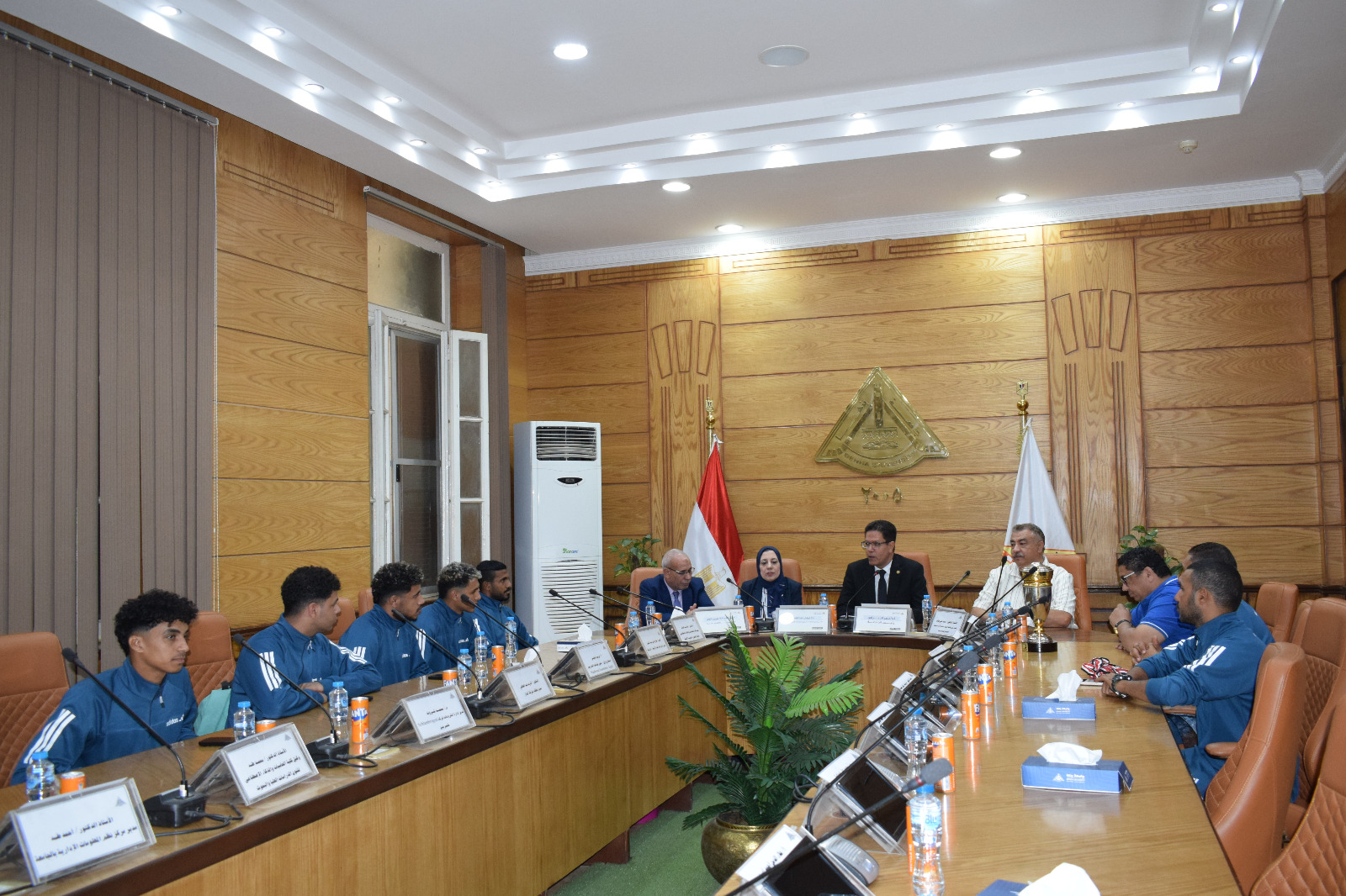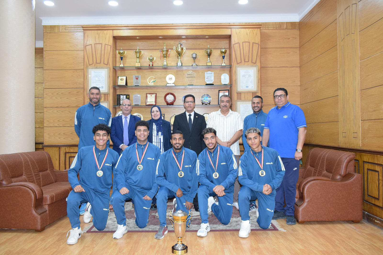 رئيس جامعة بنها يكرم الفائزين بالمركز الأول فى بطولة الدورة العربية لخماسيات كرة القدم للجامعات