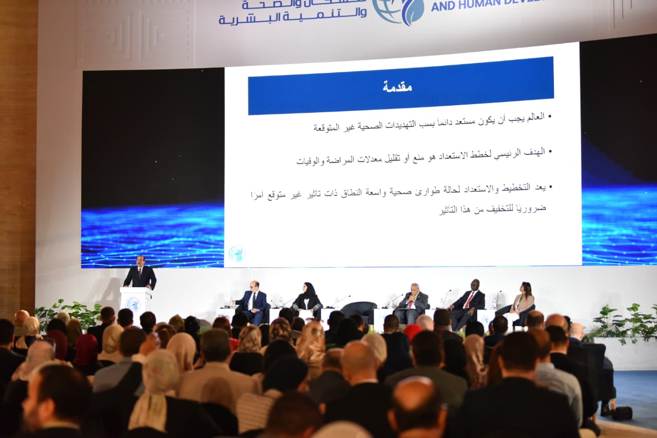 نظمت وزارة الصحة والسكان، جلسة نقاشية بعنوان «تعزيز الأمن الصحي العالمي من خلال تعزيز الاستعداد والاستجابة ونهج الصحة الواحدة» ضمن فعاليات المؤتمر العالمي للسكان والصحة والتنمية البشرية في نسخته الثالثة، برعاية السيد الرئيس عبدالفتاح السيسي رئيس الجمهورية، بهدف استعراض جهود مصر في تعزيز الأمن الصحي العالمي وتطبيق نهج الصحة الواحدة الذي يجمع بين الصحة البشرية والبيطرية والبيئية في منظومة متكاملة.