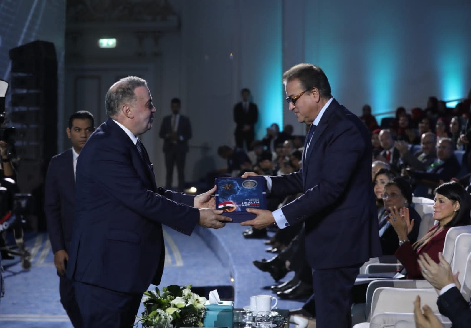 شارك في الجلسة الحوارية الدكتور أحمد طه رئيس الهيئة العامة للاعتماد والرقابة الصحية، والدكتور نعمة عابد ممثل منظمة الصحة العالمية بمصر، والسيدة مي فريد المدير التنفيذي لهيئة التأمين الصحي الشامل، والدكتور طارق محرم الرئيس التنفيذي لشركة «Elevate Capital Management».