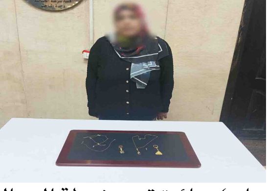 ضبط (إحدى السيدات) بدائرة قسم شرطة الجمالية لقيامها بسرقة مشغولات ذهبية من داخل مسكن "محل عملها" بأسلوب "المغافلة" ، وبحوزتها (المشغولات الذهبية المستولى عليها).