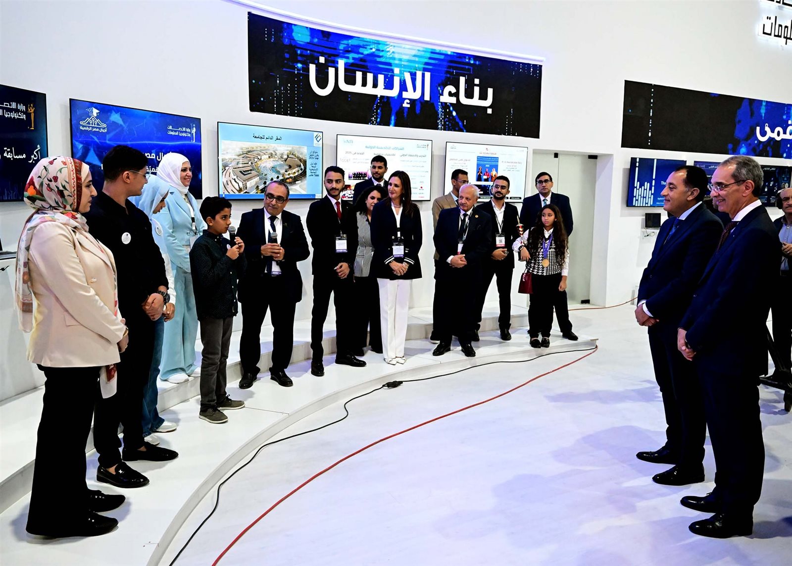 استمع الدكتور مصطفى مدبولي، رئيس مجلس الوزراء، خلال جولته في معرض ومؤتمر القاهرة الدولي للتكنولوجيا بالشرق الأوسط وأفريقيا Cairo ICT، لتجربة طفلة مصرية صغيرة مشاركة في المعرض حول قصة نجاحها باستخدام تقنية الذكاء الاصطناعيّ.