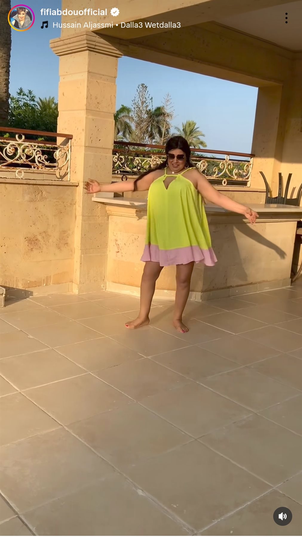 خطفت الفنانة فيفي عبده الأنظار من الساحل الشمالي، وذلك بعد ظهورها بفستان أصفر قصير ترقص على أغنية دلع وأتدلع لـ حسين الجسمي.
