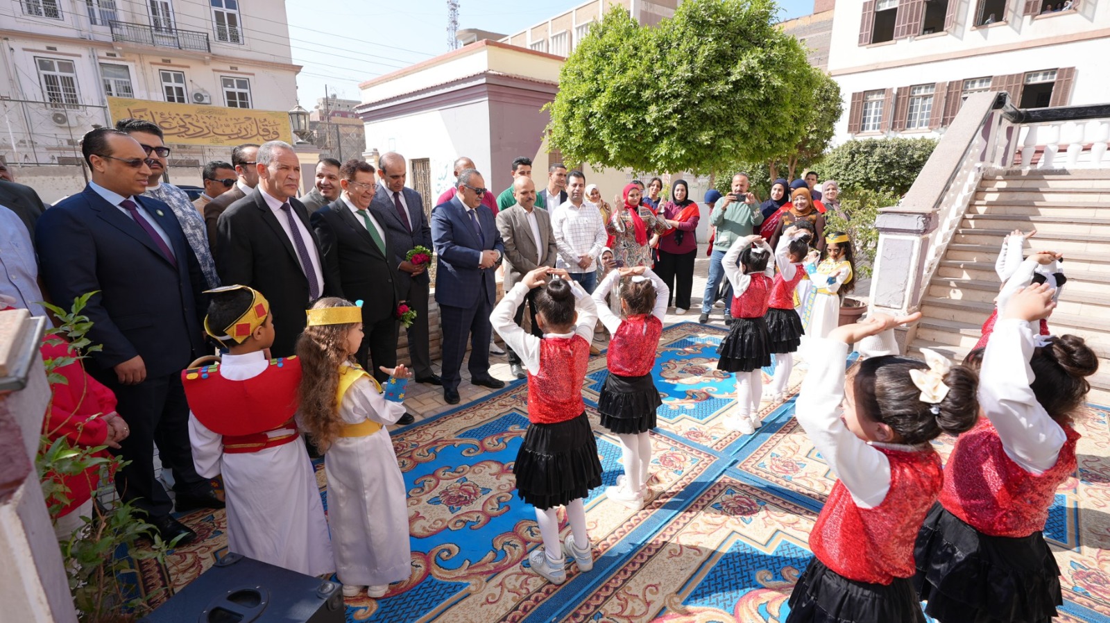 حيث افتتح محافظ أسيوط الفعاليات بعزف النشيد الوطني المصري ثم النشيد الوطني الهندي باللغة الهندية، قدمهما فريق كورال مدرسة خديجة يوسف، أعقب ذلك عروض فنية لطالبات مدارس أسيوط، تضمنت استعراضات فرعونية وهندية، إلى جانب فقرة للأطفال من روضة الفاروق الرسمية للغات.