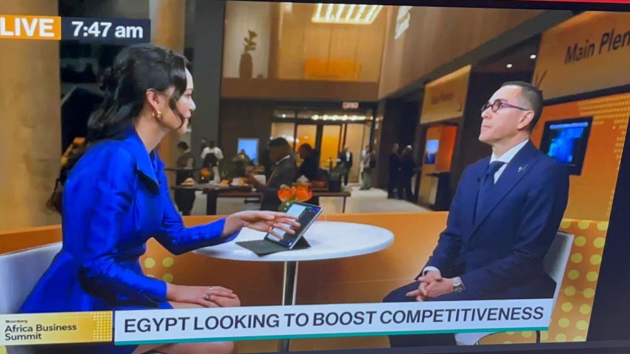 وزير الاستثمار والتجارة الخارجية يجري مقابلة تلفزيونية مع شبكة بلومبرج العالمية