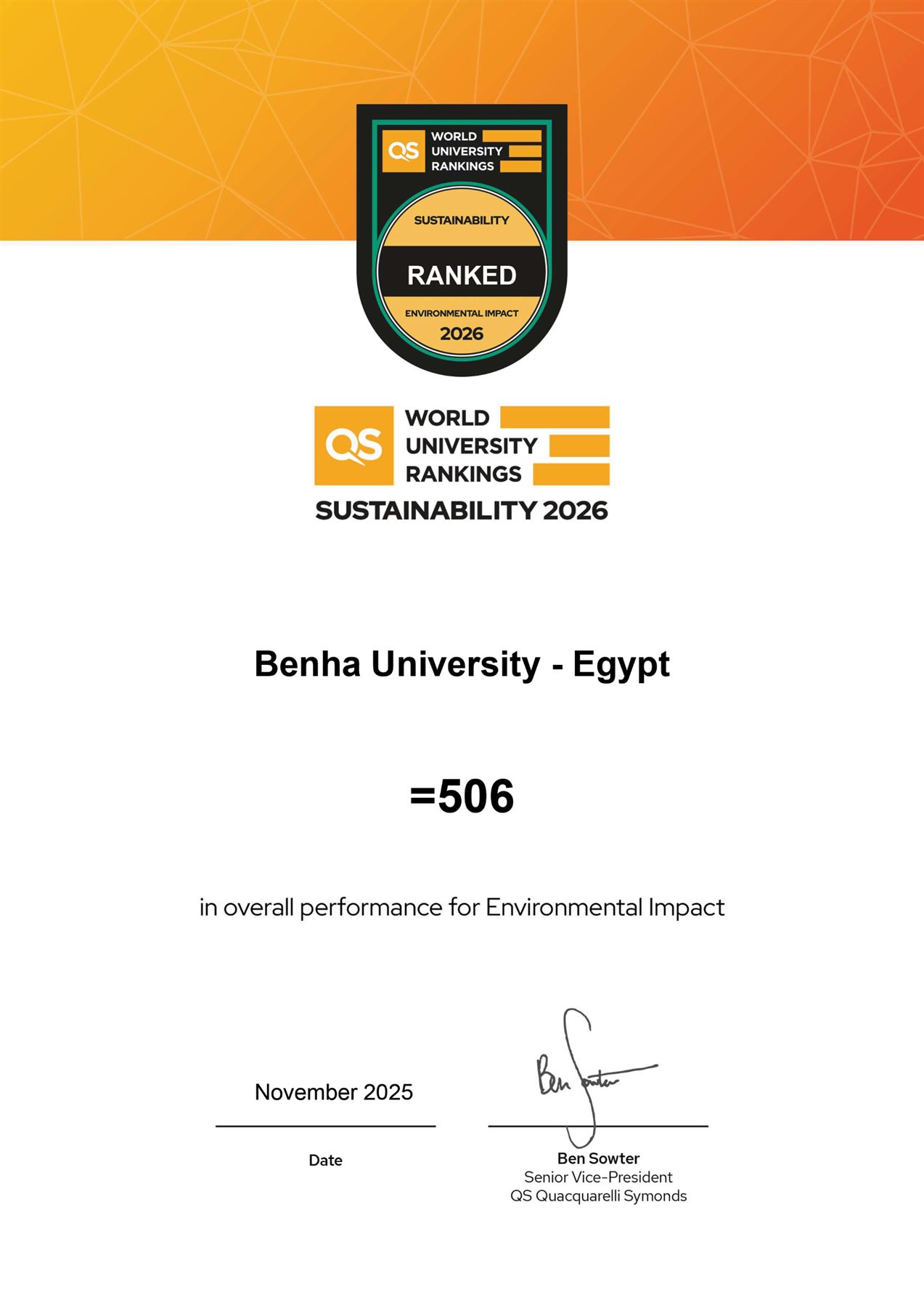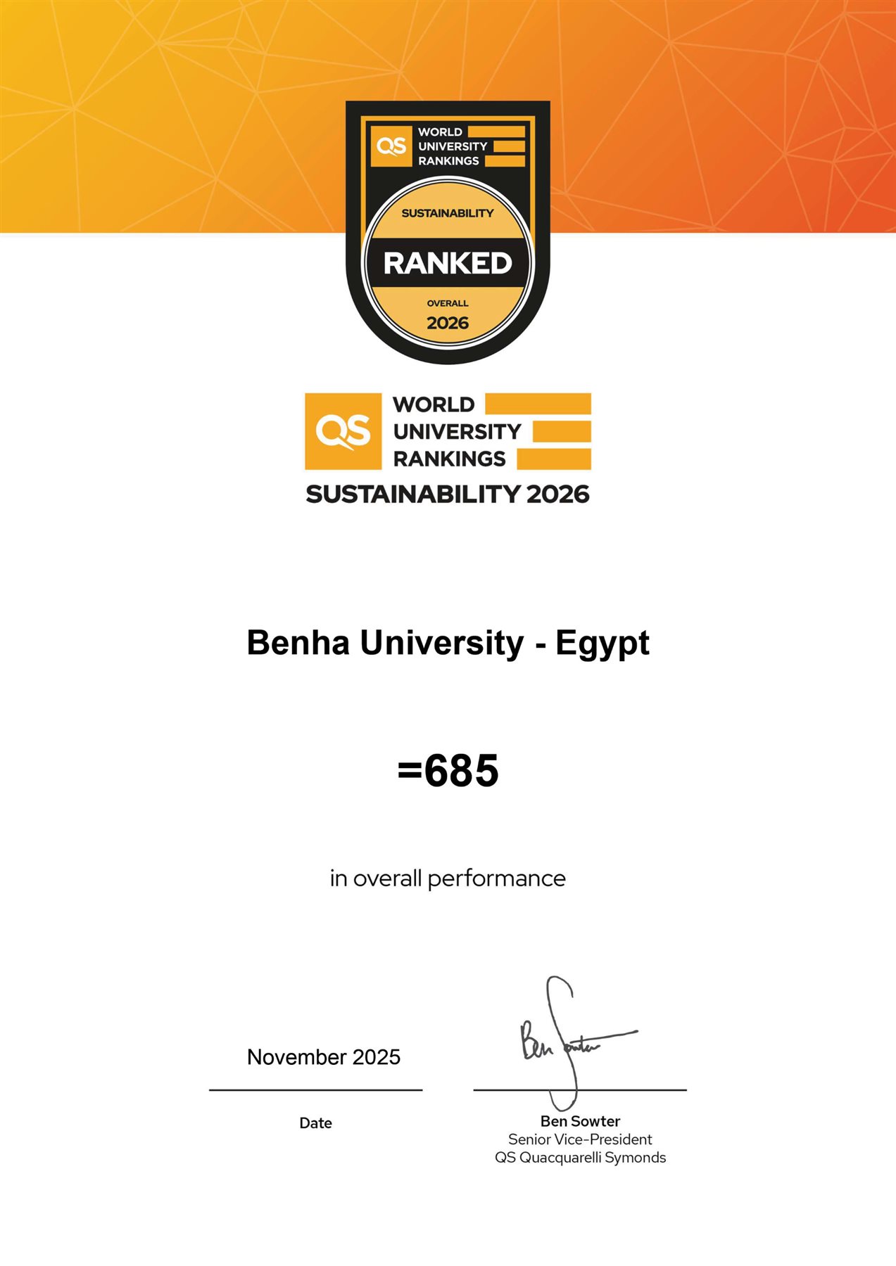 أعلن الدكتور ناصر الجيزاوي رئيس جامعة بنها عن ظهور الجامعة بـ تصنيف QS للتنمية المستدامة لعام 2026، فقد جاءت الجامعة بالمركز 685 ضمن 2,002 جامعة حول العالم شملهم التصنيف هذا العام بزيادة 258 جامعة عن الإصدار السابق.