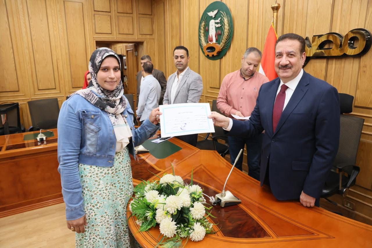 محافظ المنوفية يسلم شهادات تدريب ومكافأة مالية لـ 30 فتاة من خريجات برنامج التدريب المهني
