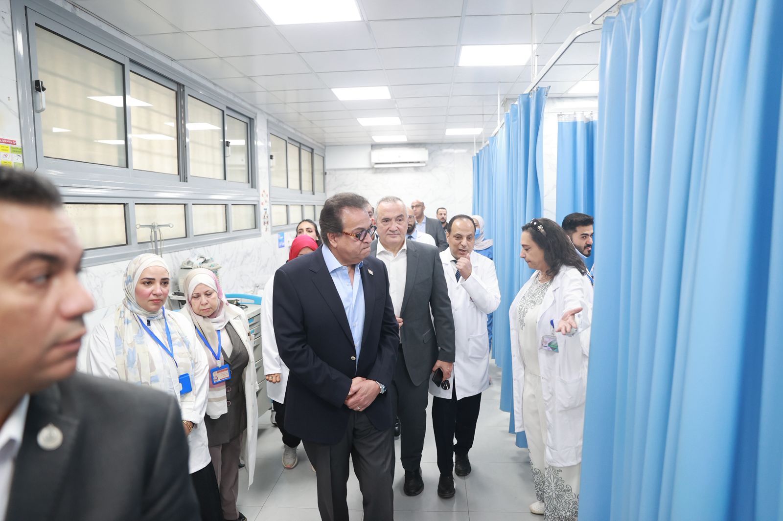 ويذكر أن قد تفقد نائب رئيس مجلس الوزراء ووزير الصحة والسكان، أقسام الملاحظة والأشعة والإنعاش والغسيل الكلوي وطوارئ الغسيل، ووجه بالإسراع في تفعيل برنامج الغسيل الكلوي البريتوني (CAPD) للحالات ذات المشكلات الوعائية، كما تابع أعمال استحداث 4 غرف إدارية جديدة.