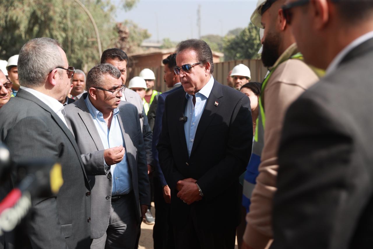 وفي أرض مستشفى حميات إمبابة، تفقد الوزير مشروعي المجمع التعليمي الطبي (مدرسة ومعهد تمريض) ومبنى المخازن الطبية، معرباً عن استيائه من التأخير، وموجهاً بمراجعة العقود واتخاذ الإجراءات القانونية ضد المتسببين في التأخير.
