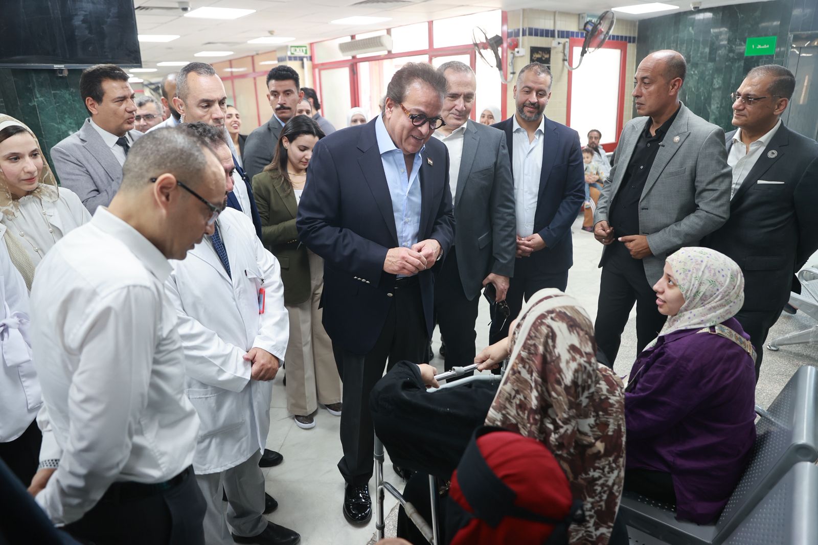 بدأ الوزير جولته بالمعهد القومي للجهاز الحركي والعصبي والطب الرياضي، حيث استمع إلى شكاوى المرضى بالعيادات الخارجية، ووجه بحجز حالة للعلاج الفوري وإحالة سيدة لتركيب سماعات أذن بمعهد السمع والكلام.