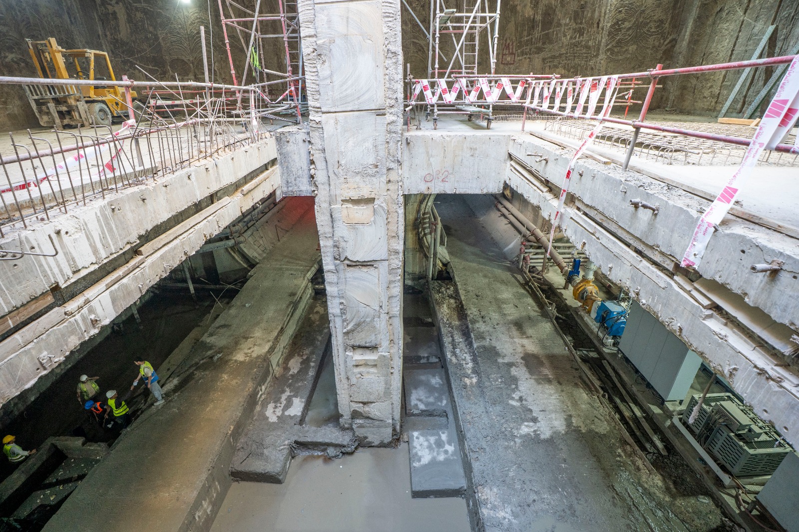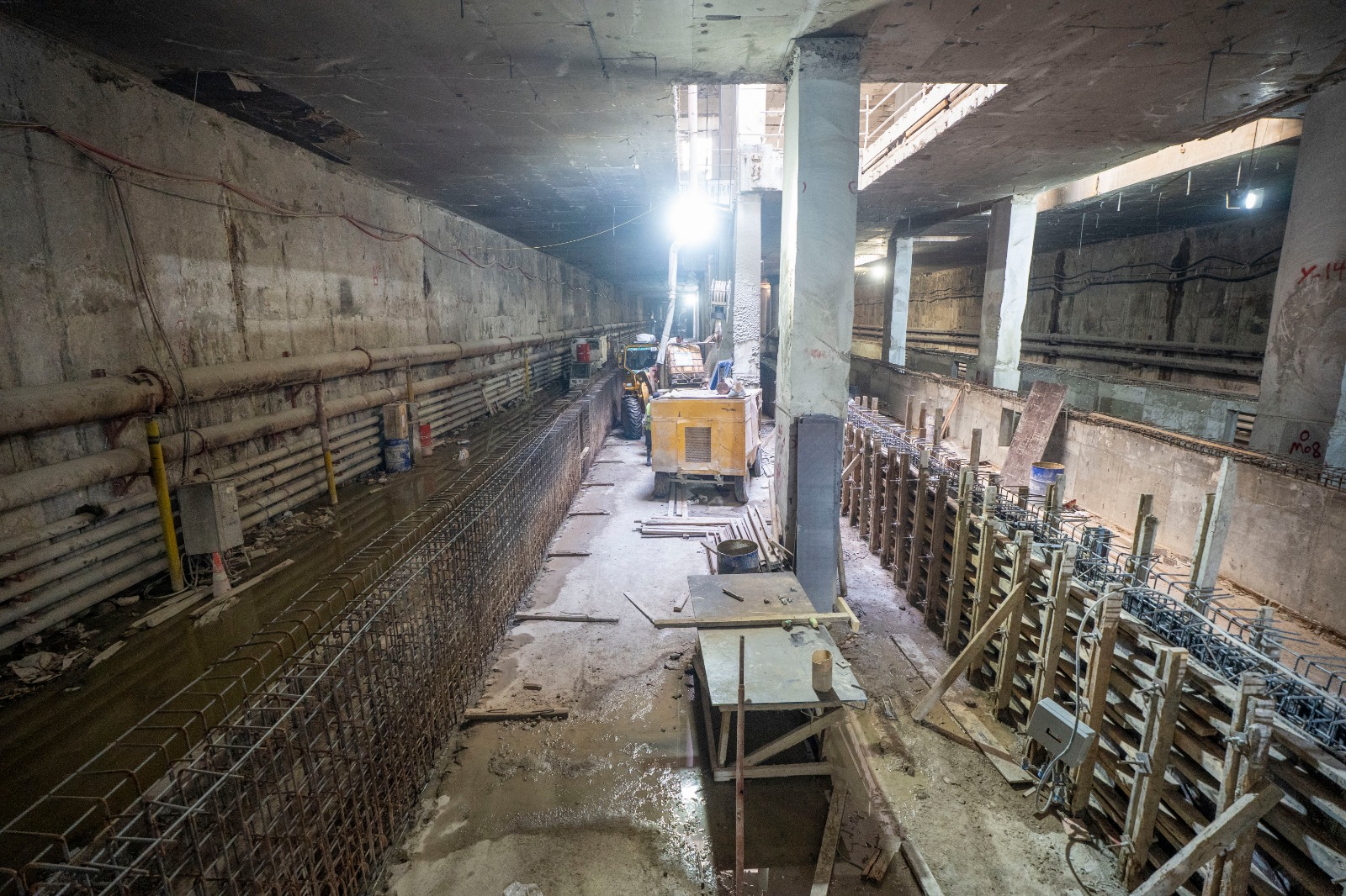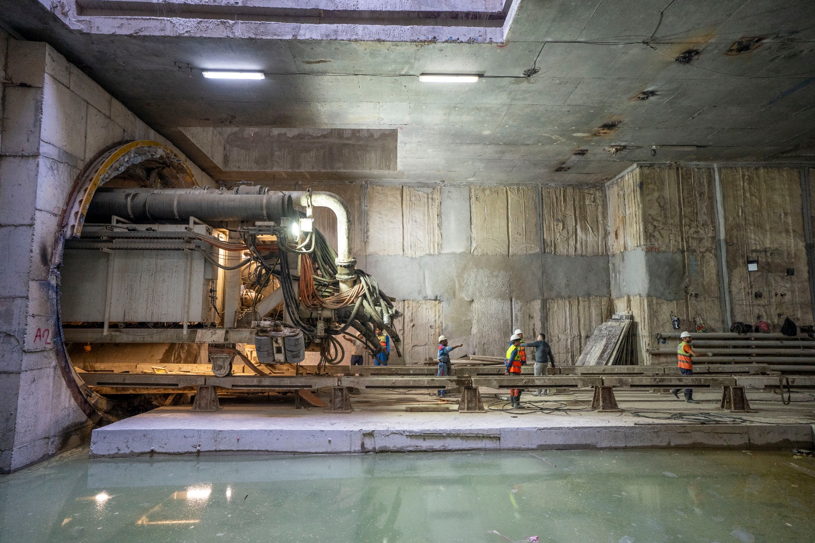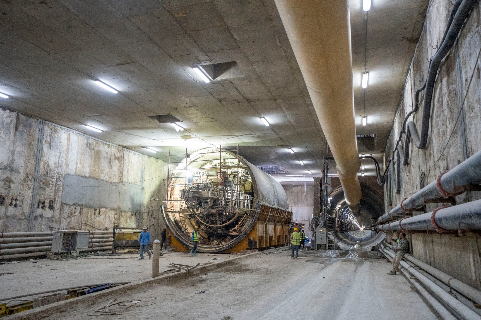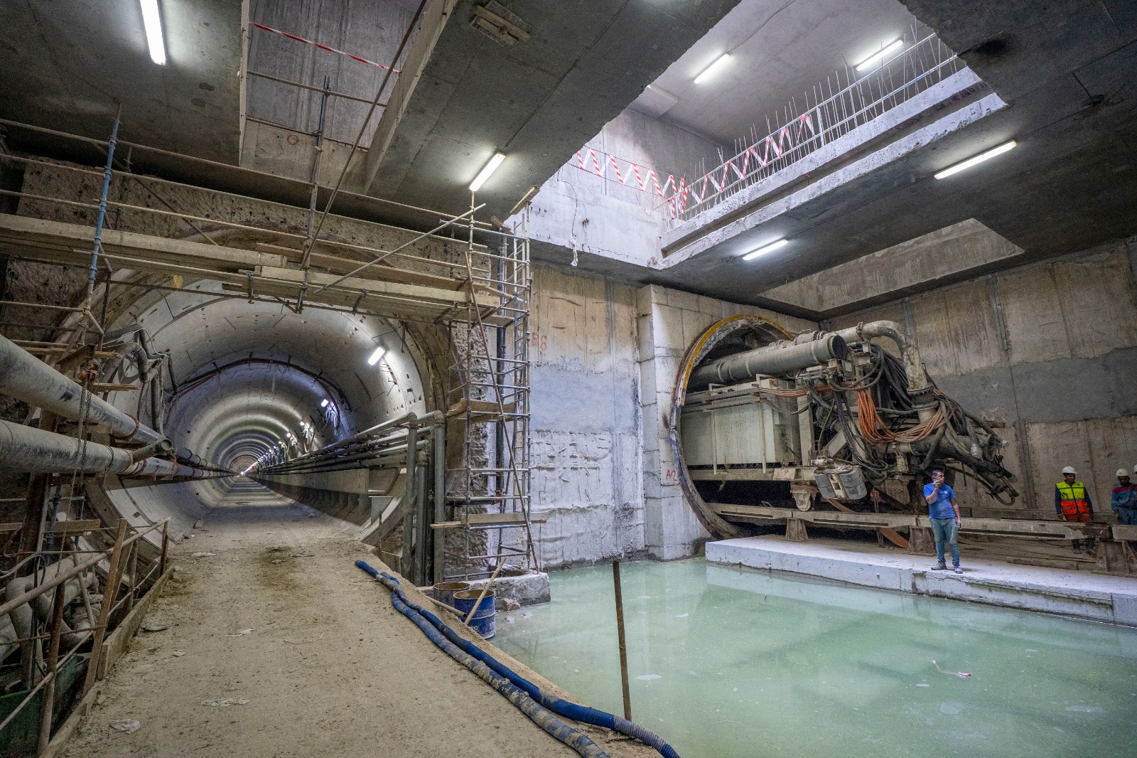 يجري حالياً تنفيذ الأعمال الإنشائية بالمرحلة الأولى بالمحطات كذلك أعمال الحفر النفقي لنفقي المترو (نفق لكل إتجاه) بواسطة 4 ماكينات حفر نفقي (2 ماكينة لكل إتجاه).