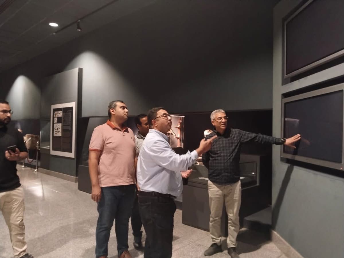 وقد قام كل من الأستاذ مؤمن عثمان، والدكتور أحمد محمد حميدة، بجولة موسّعة داخل المتحف لمتابعة مستجدات العمل، شملت قاعات العرض، معامل الترميم، المخازن المتحفية، والمنظومة الأمنية، وذلك تمهيدًا لإعادة افتتاح قاعة الخبيئة في صورتها الجديدة قريبًا. وقد رافقهم خلال الجولة الدكتور محمود مبروك، والدكتور علاء المنشاوي.