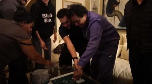 محمد منير وويجز يحتفلان بديو كلام فرسان فى منزل الكينج