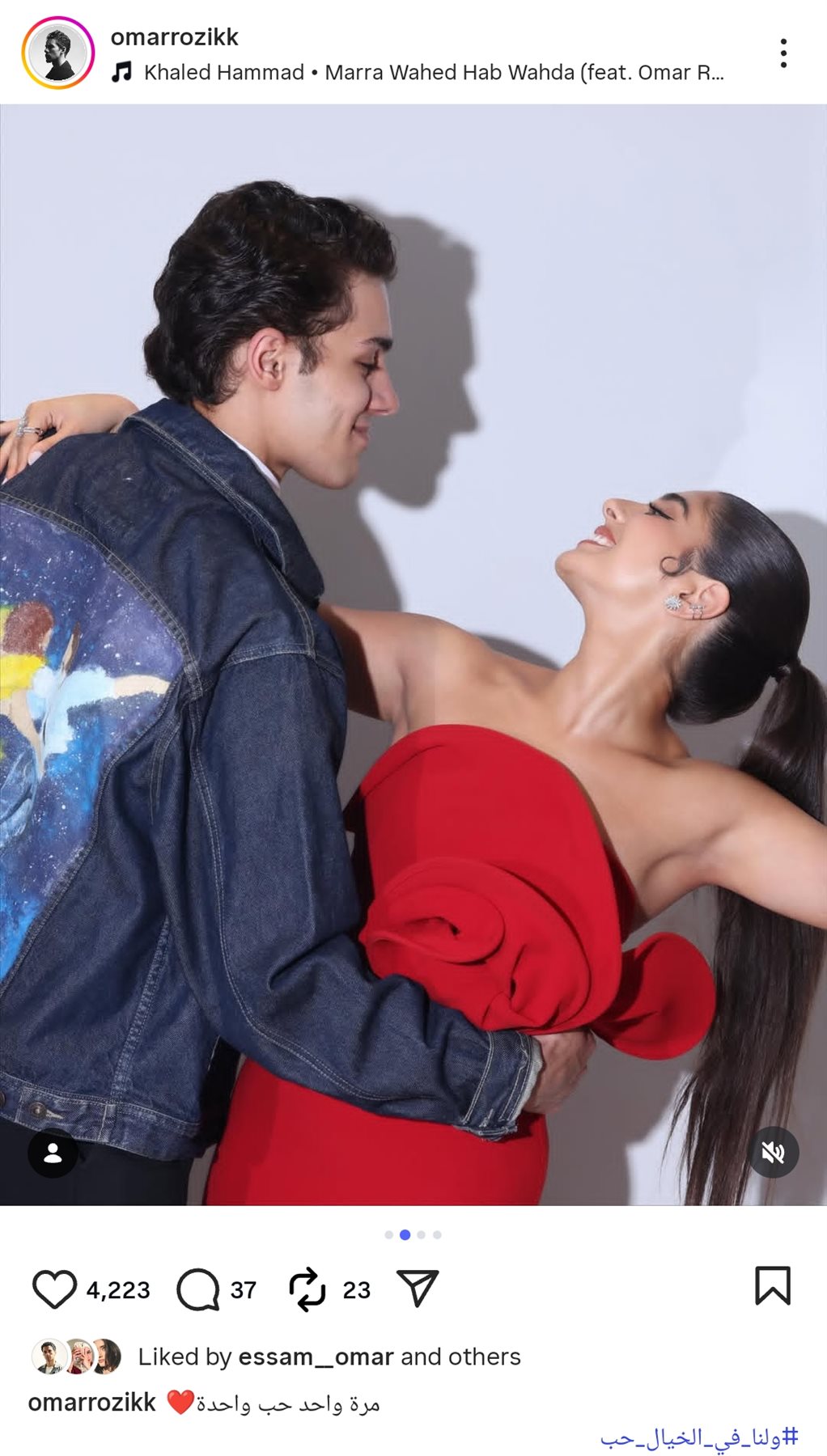 ونشر عمر رزيق الصور من خلال حسابه الرسمي عبر موقع تبادل الصور والفيديوهات القصيرة إنستجرام، وعلق: مرة واحد حب واحدة.. ولنا في الخيال حب.