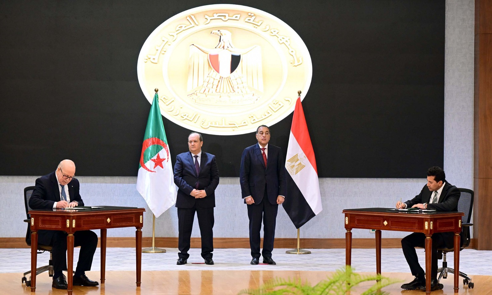 شهد الدكتور مصطفى مدبولي، رئيس مجلس الوزراء وسيفي غريب، الوزير الأول للجمهورية الجزائرية، اليوم الأربعاء ، مراسم توقيع عدد من الوثائق في عدة مجالات ذات اهتمام مشترك تدعم أهداف تعزيز التعاون الثنائي بين البلدين، وذلك عقب ترأسهما بالقاهرة أعمال الدورة التاسعة للجنة العليا المصرية الجزائرية المشتركة.